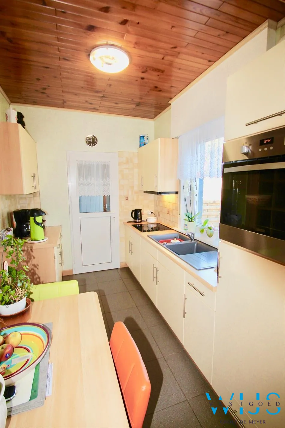 Indeling: inkomhal, geïnstalleerde keuken, dubbele ... leefruimte met aansluitend de leefveranda, apart toilet, berging (fietsen) en kelder.