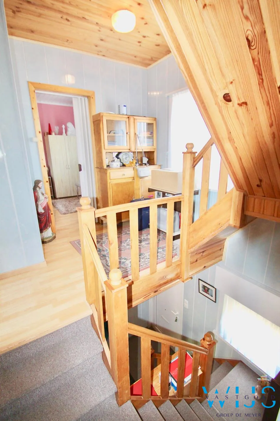 1ste verdieping: 2 slaapkamers, bureauruimte, badkamer met douche en via de vaste trap de in te richten zolder !
