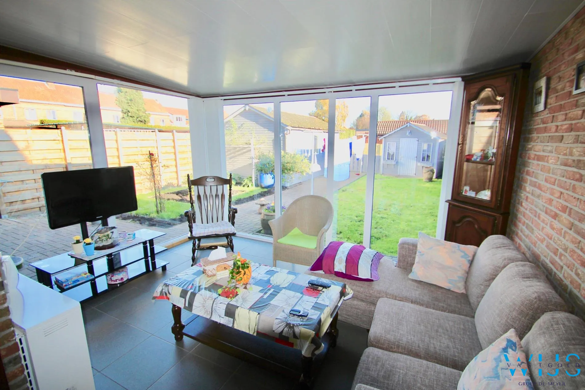 Op de benedenverdieping is er een dubbele lichtrijke leefruimte aanwezig met aansluitend een gezellige leefveranda die uitzicht geeft op de zonnige tuin. In de tuin is er een tuinhuis & een aparte garage met rechtstreekse doorgang naar de straat. De doorgang achteraan is de grote troef omdat die ervoor zorgt dat de tuin en garage eenvoudig te bereiken is.