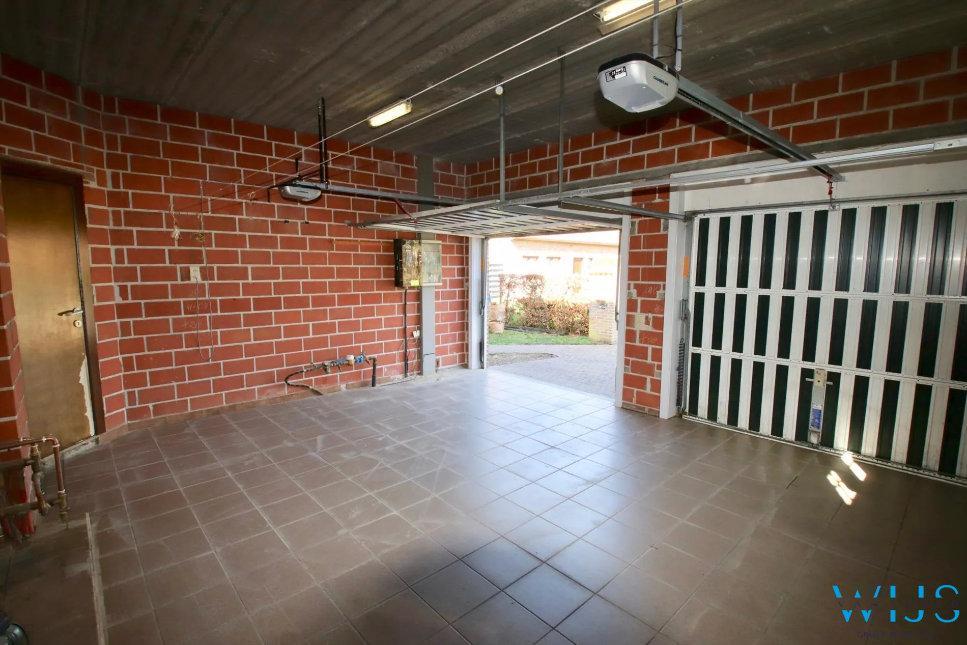 Indeling: inkomhal met apart toilet, ruime dubbele leefruimte, geïnstalleerde keuken, berging/wasplaats, een volwaardige slaapkamer beneden, dubbele garage met 2 aparte elektrische poorten.