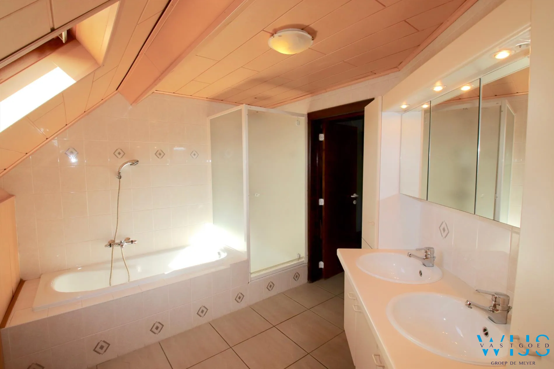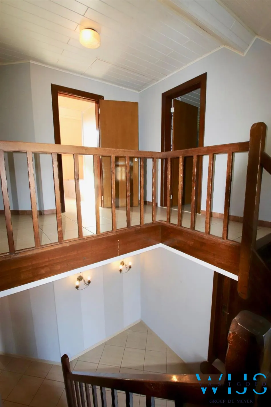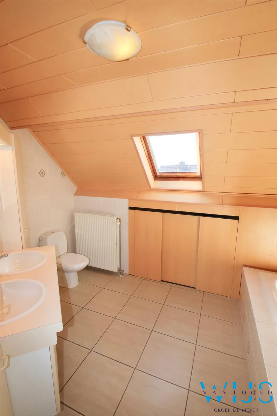 1ste verdieping: 3 slaapkamers waarvan 1 met dressing, badkamer met bad, douche en toilet + de zolder met opbergmogelijkheden.