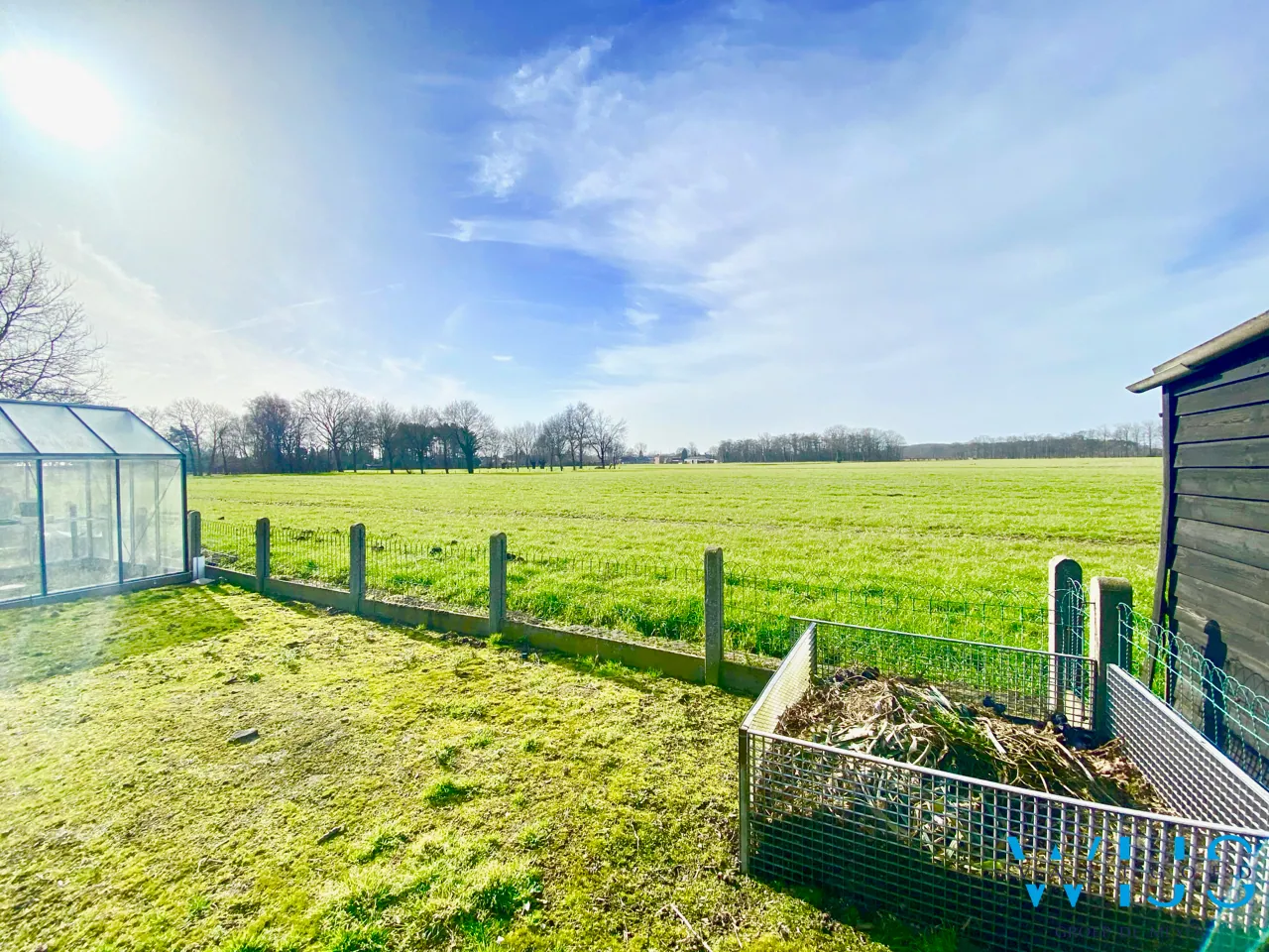 Er is een enorme openheid (breedte van +- 20 meter) en een fenomenaal uitzicht naar de achterliggende velden + ZUID-WEST oriëntatie!