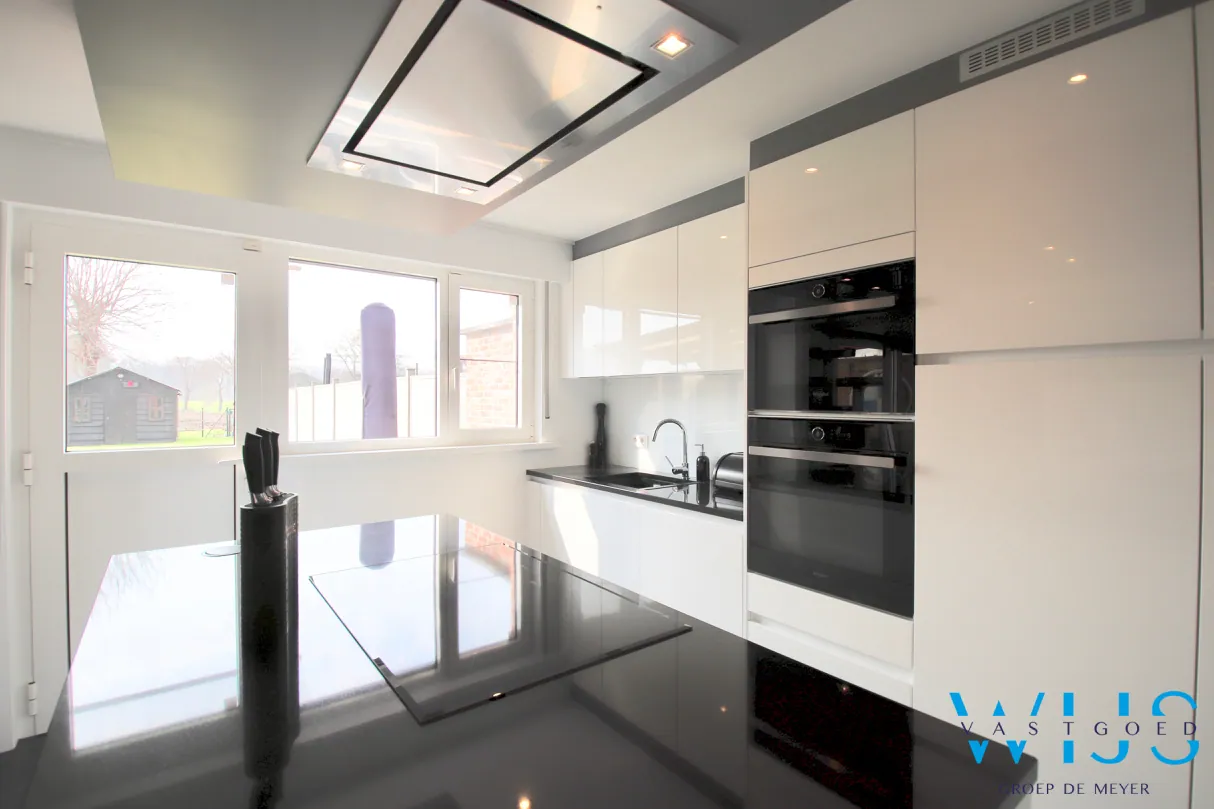 Indeling: inkomhal met vestiaire & apart toilet, lichtrijke leefruimte met ... eetplaats en open geïnstalleerde keuken, berging/wasplaats/ inpandige garage en de zonnige tuin met uitzicht & aangenaam zonneterras met overkapping!
