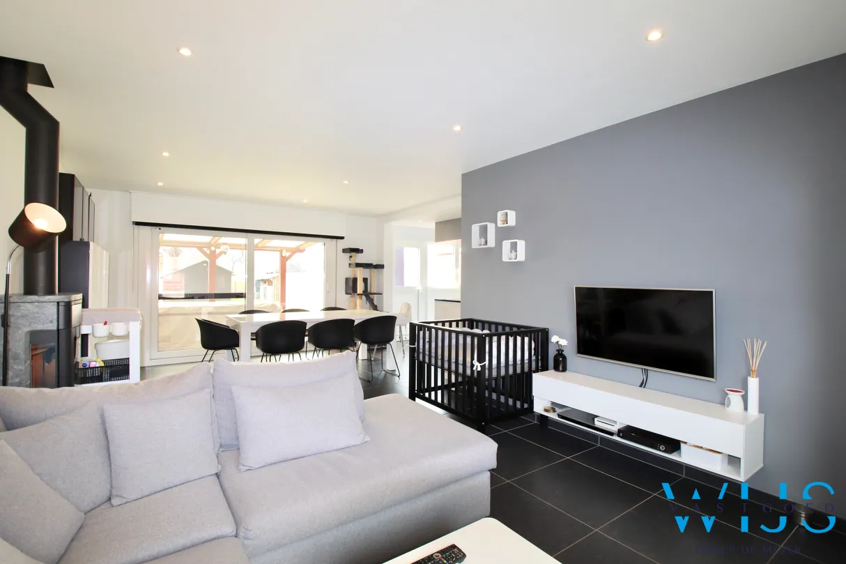 Naast de 3 toffe slaapkamers met ingemaakte kasten is er de lichtrijke leefruimte met gezellige houthaard. Er is altijd een leuke verbinding met de open volledig geïnstalleerde keuken incl. kwalitatieve toestellen en de zonnige tuin met perfecte oriëntatie.