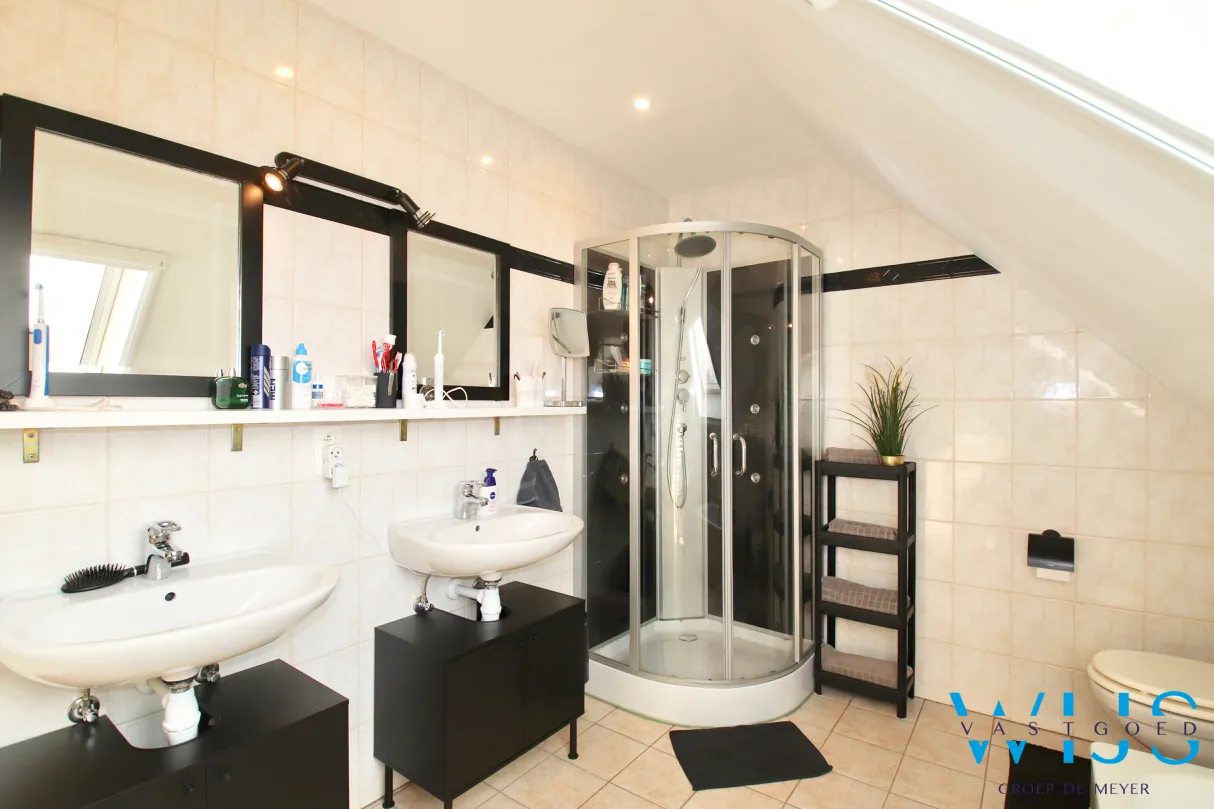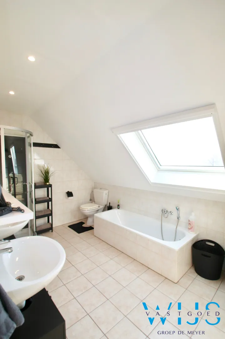 1ste verdieping: 3 mooie slaapkamers en de badkamer met bad, dubbel meubel & douche! De zolder/opbergruimte is ook zeer handig.