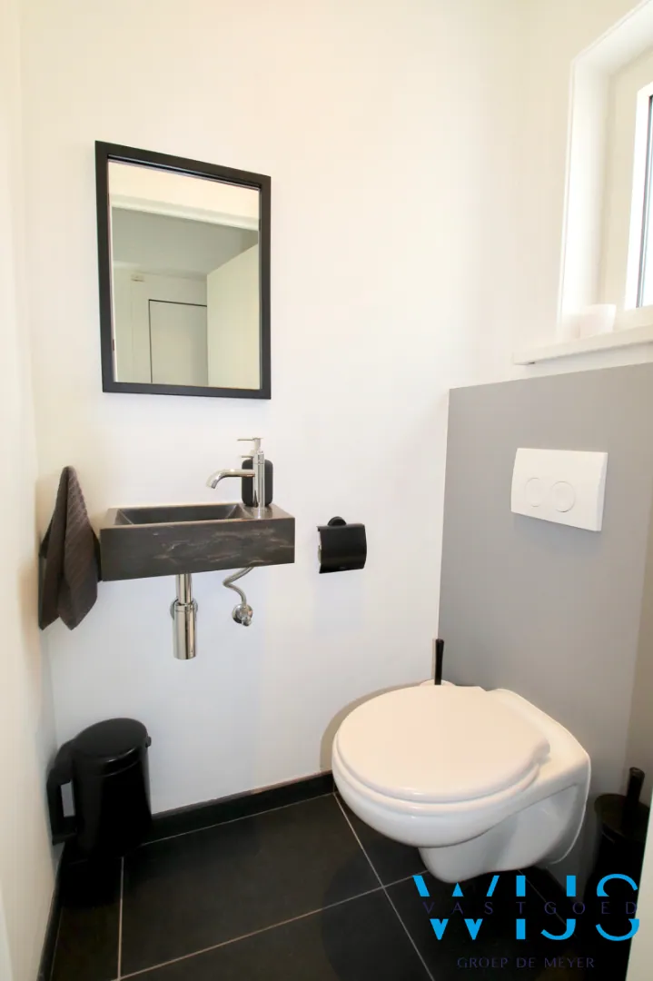 Deze volledig gerenoveerde (2018) gezinswoning beschikt over een mooie zonnige groene tuin (ZW) met prachtig zonneterras en landelijk gegarandeerd uitzicht. Er werd gekozen voor een hedendaagse moderne stijl die doorgetrokken werd doorheen de hele woning! Tevens werd er totaalisolatie (dakisolatie, spouwisolatie, vloerisolatie,...) aangebracht, HR-glas geplaatst en is er een PV zonnepaneleninstallatie aanwezig van 10.500 Wp. Met een UITSTEKENDE EPC score van 175kWh/m²/jaar en en blanco gekeurd elektriciteitsattest hoeft u zich de komende jaren geen zorgen meer te maken!
