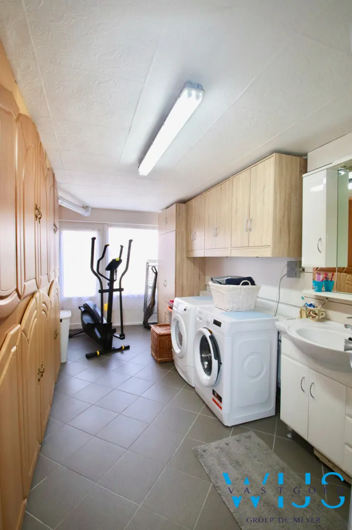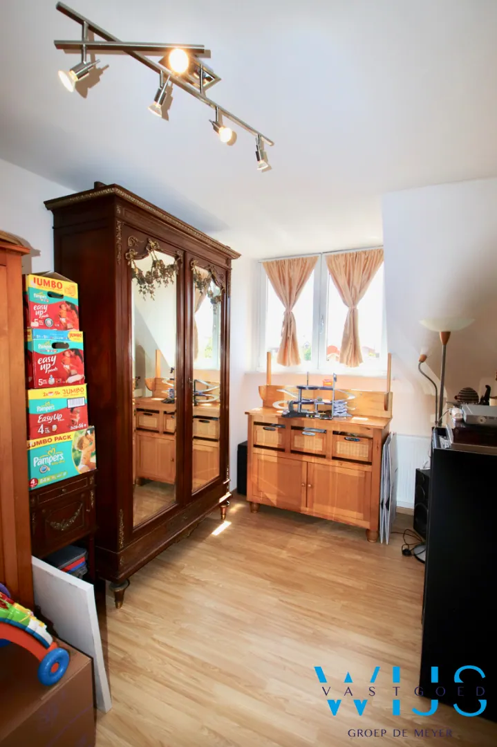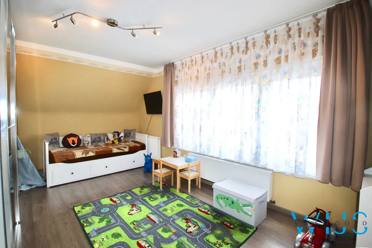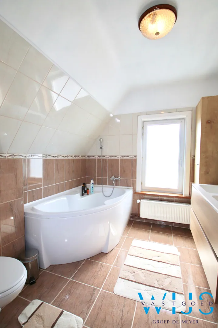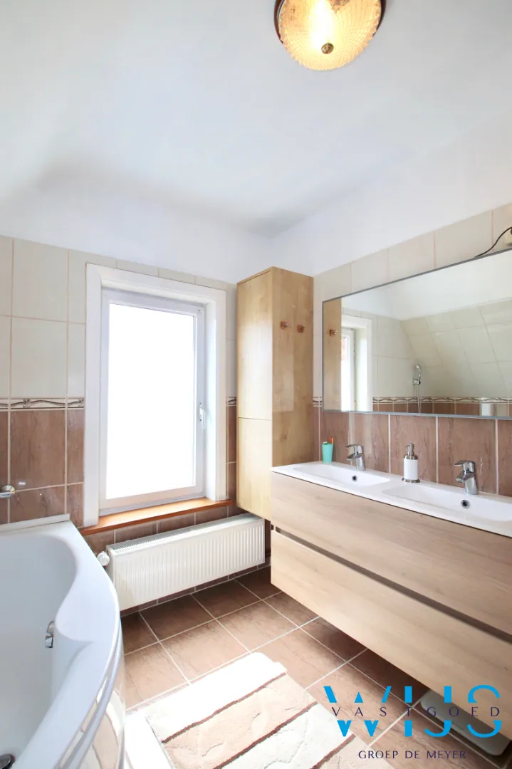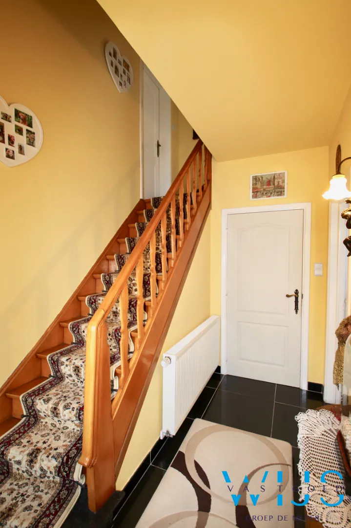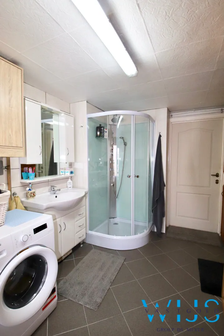 Indeling: Inkom, leefruimte met eet -en zitplaats, geïnstalleerde keuken, droge aangename kelder, toilet, ... wasplaats/doucheruimte. Op de verdieping zijn er 3 slaapkamers + de nette badkamer met douche EN toilet !