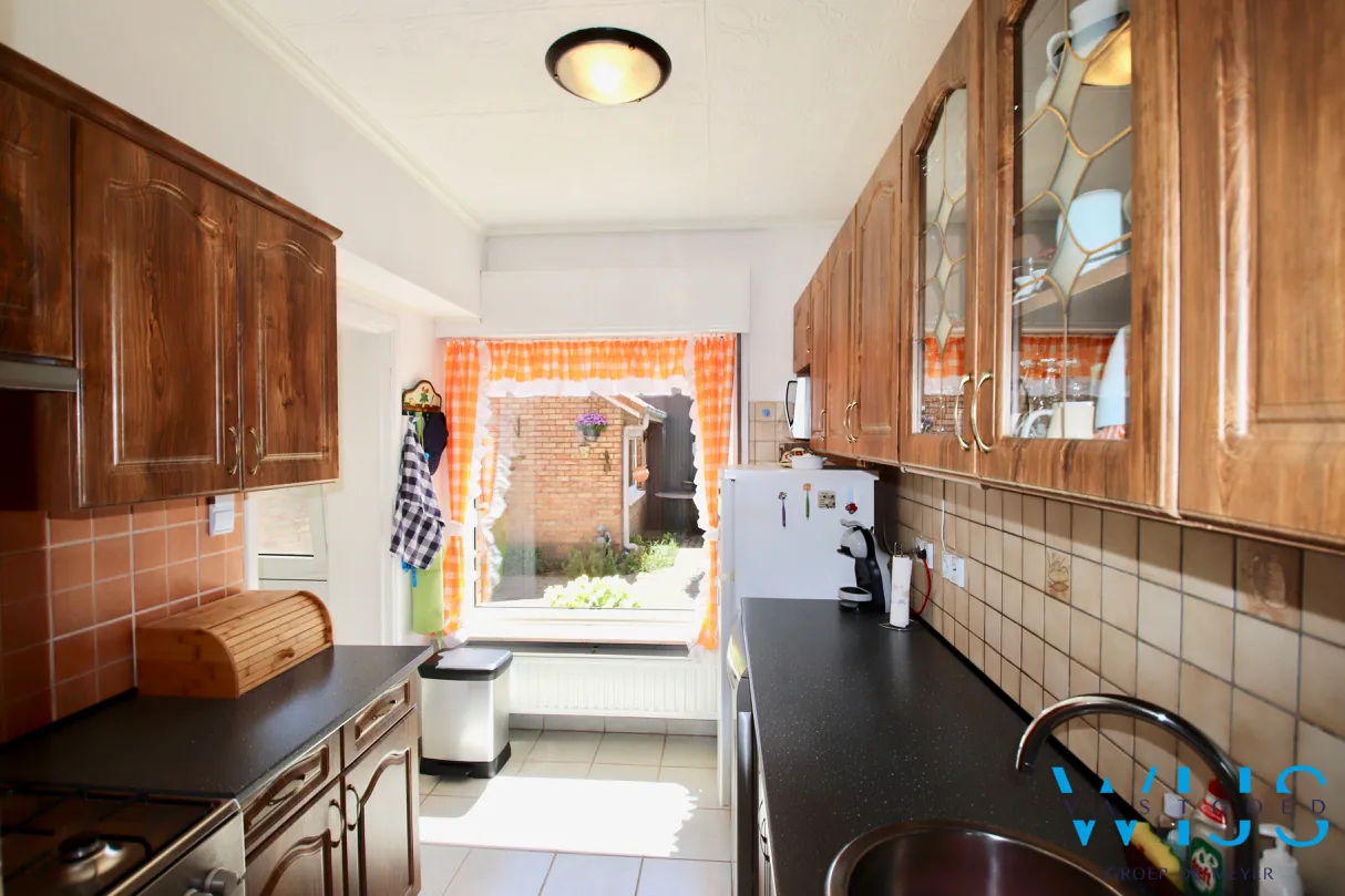 Deze rustig gelegen half-open bebouwing op een ZUIDgericht en groen perceel van 786m² werd met stipt onderhouden en is op vandaag meer dan instapklaar. De woning met betonnen gewelven werd de afgelopen jaren zowel technisch als esthetisch aangepakt; zo werd er een CV ketel op aardgas geïnstalleerd , dakisolatie geplaatst en werd de elektriciteitsinstallatie conform gekeurd. Bovendien is er dubbel glas met rolluiken aanwezig. Verder zijn 3 mooie slaapkamers, hele nette badkamer boven en een doucheruimte op het gelijkvloers. De droge kelder en extra bergruimtes zijn ook pluspunten.