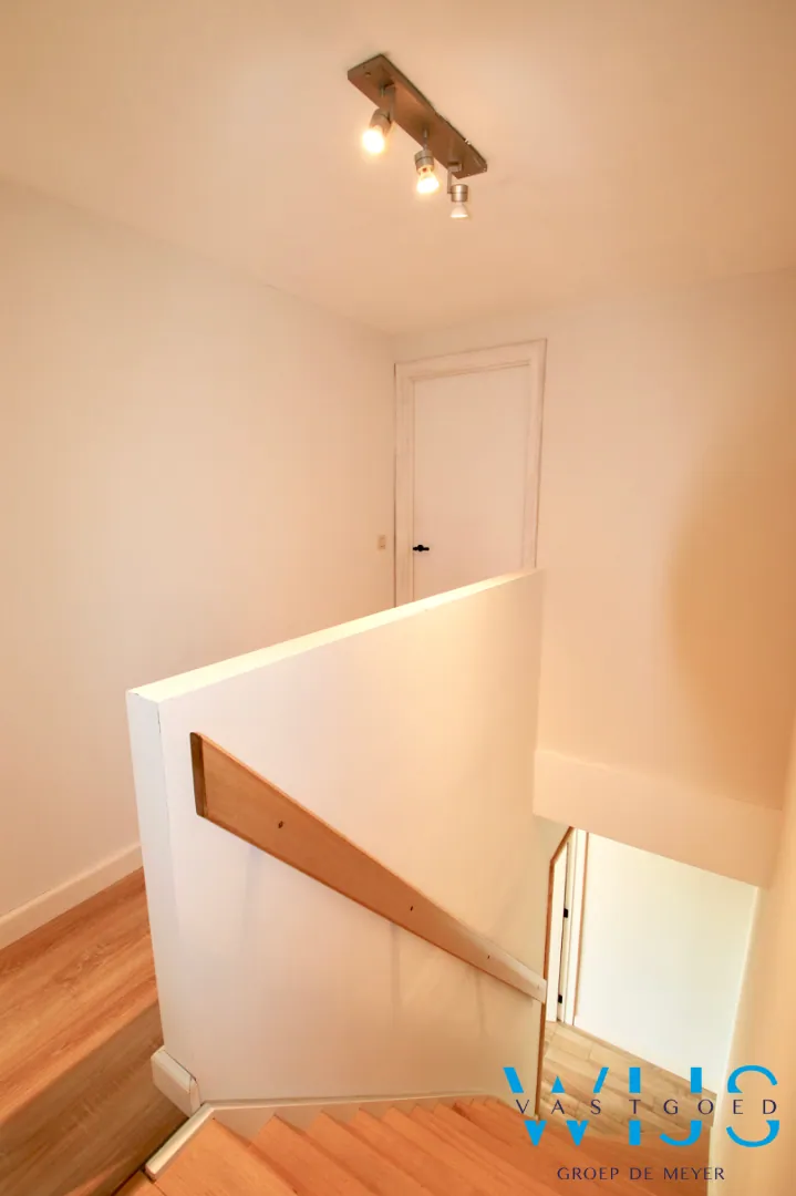 Indeling; inkom met leuke vestiairekast, lichtrijke leefruimte met open landelijk keuken incl. kwalitatieve toestellen, achterhal, apart toilet, badkamer met bad & douche, slaapkamer 1, inpandige ... garage met ruime zolderverdieping en de ZUIDgerichte tuin met zonneterras & oprit + toegangspoort.