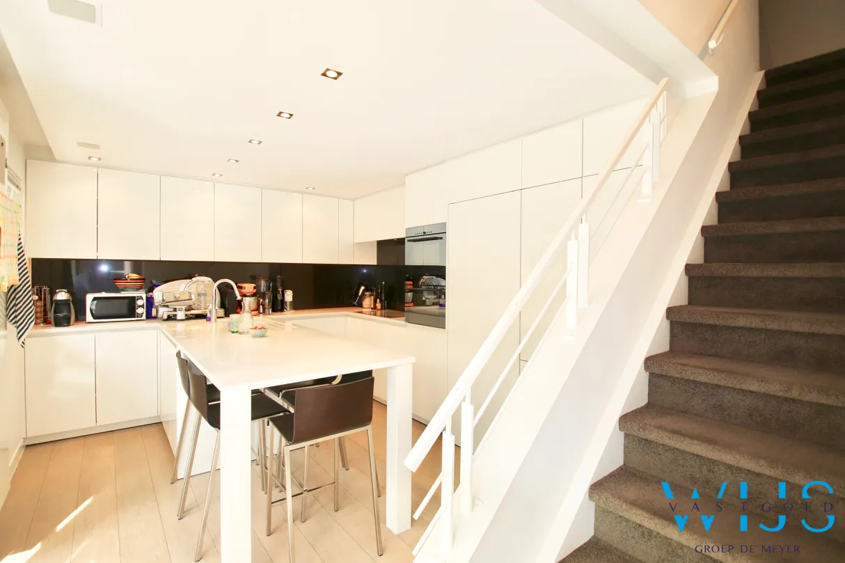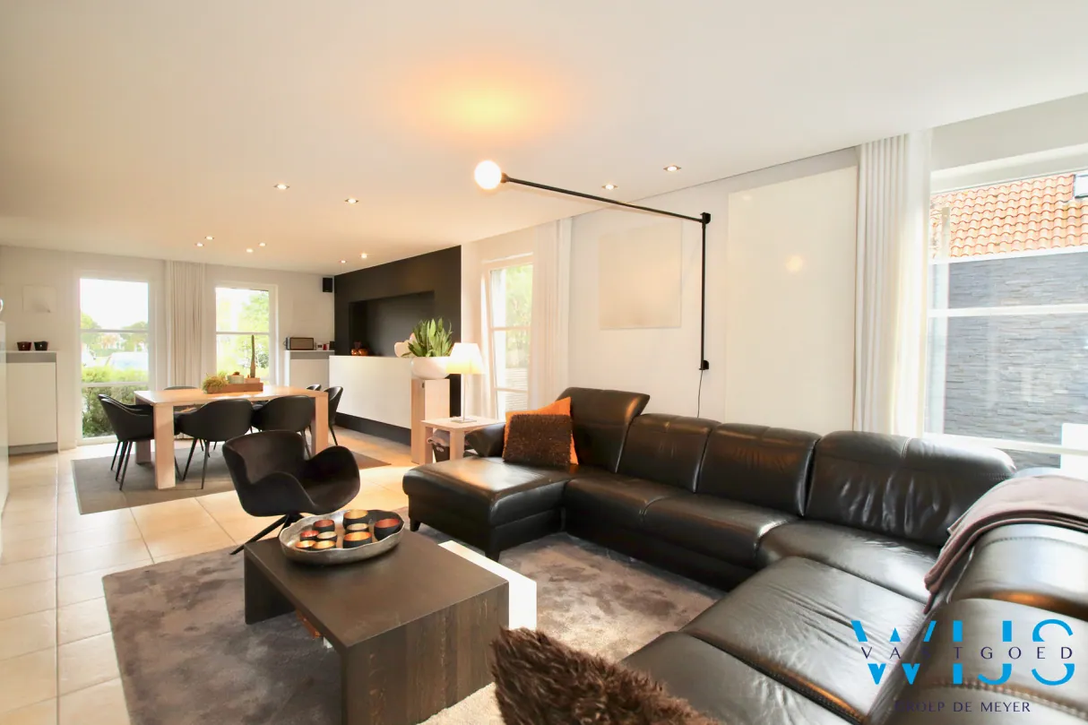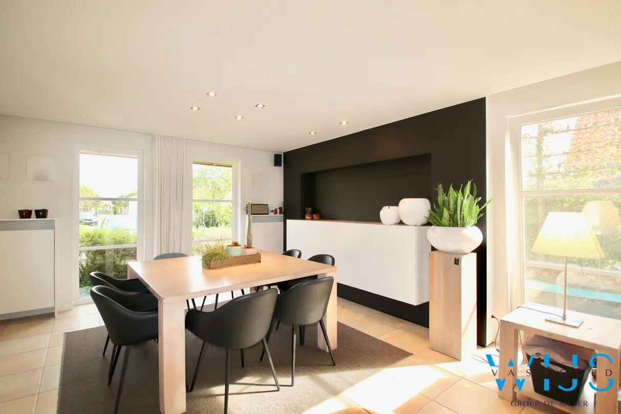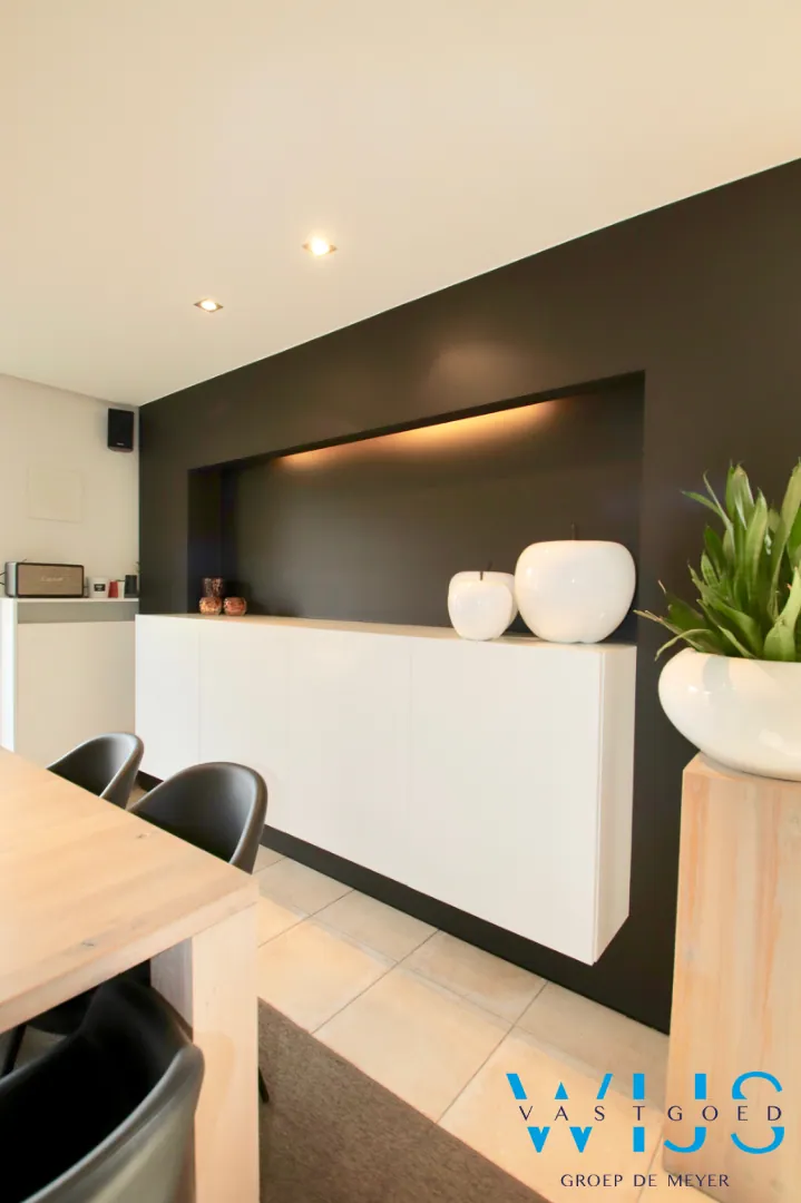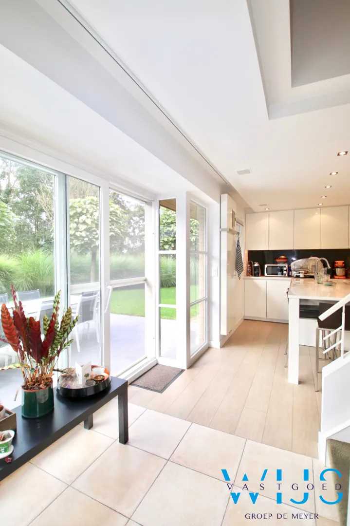De lichtinval doorheen de woning is subliem & er werd steeds gekozen zowel binnen als buiten voor kwalitatieve & tijdloze materialen.