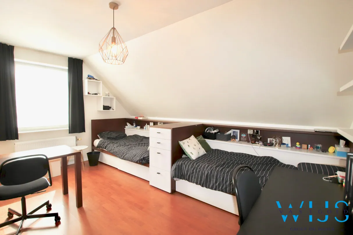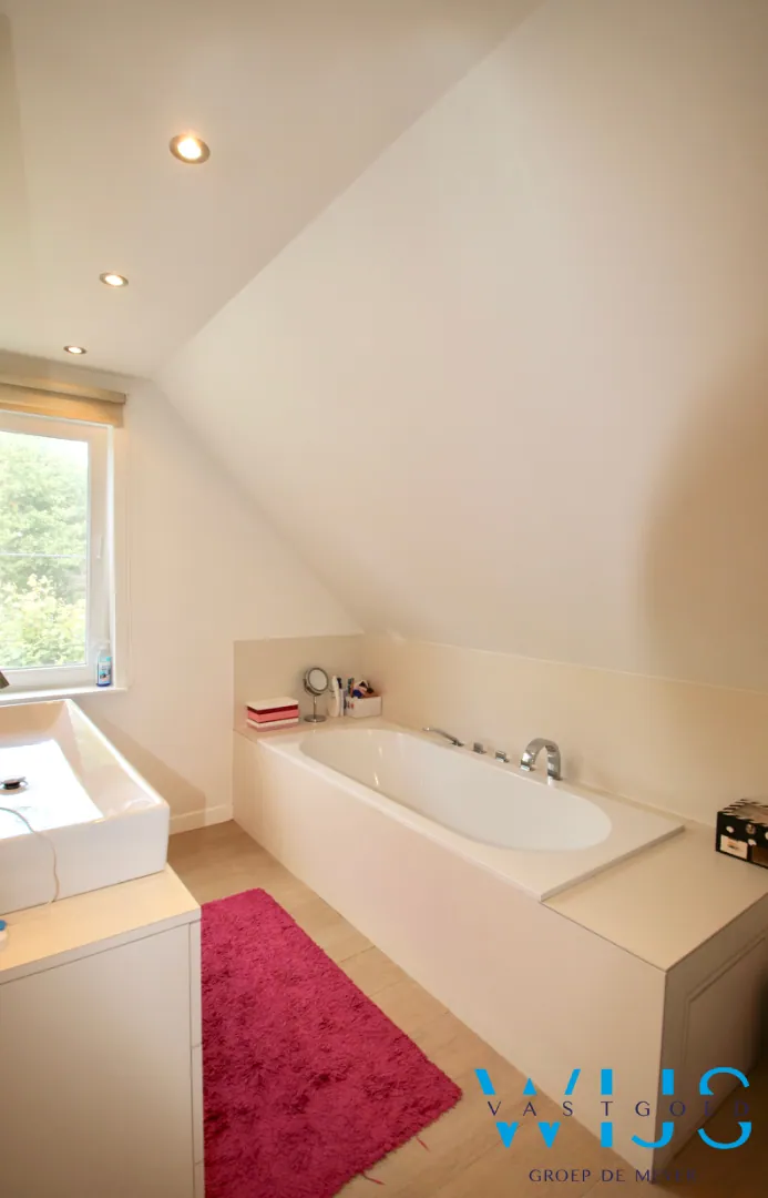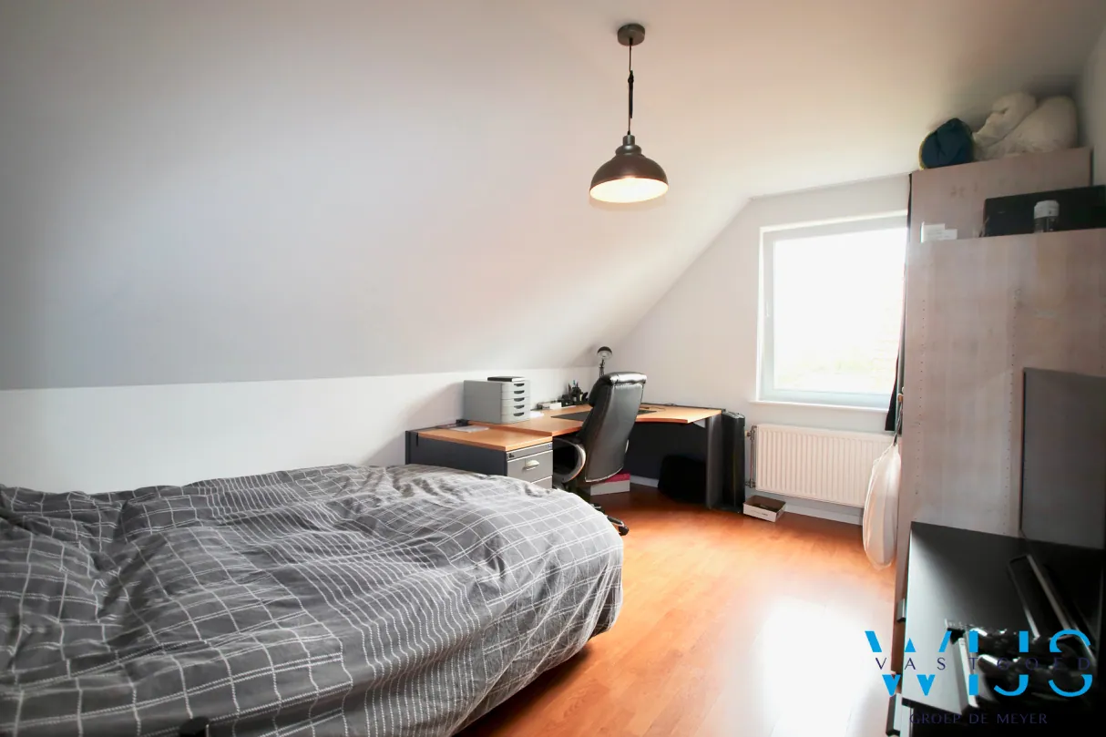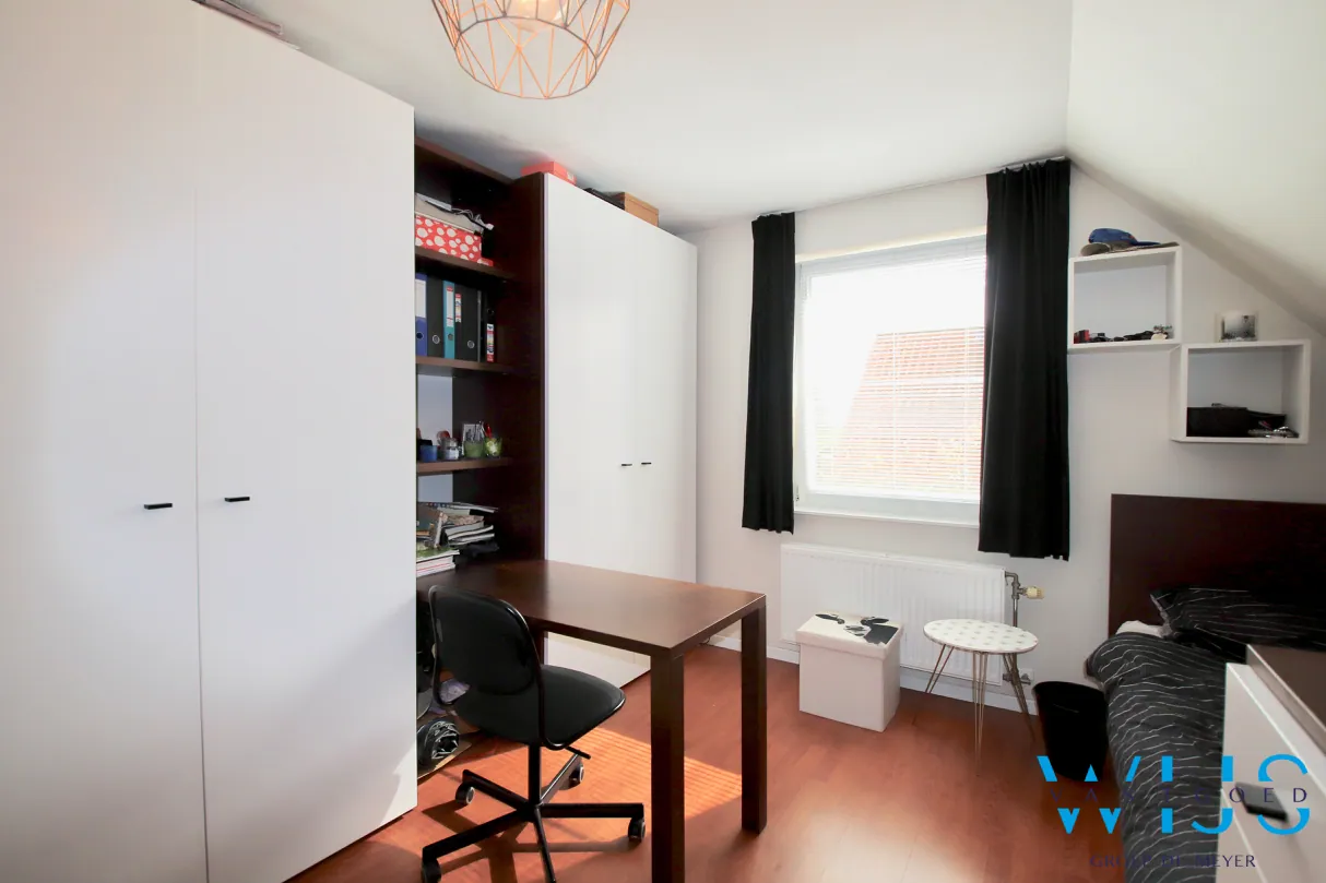 Op de 1ste verdieping: 3 slaapkamers en de moderne badkamer met bad, douche & toilet. De zolder is bergruimte !