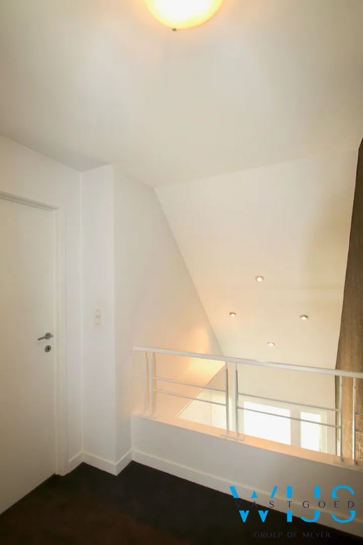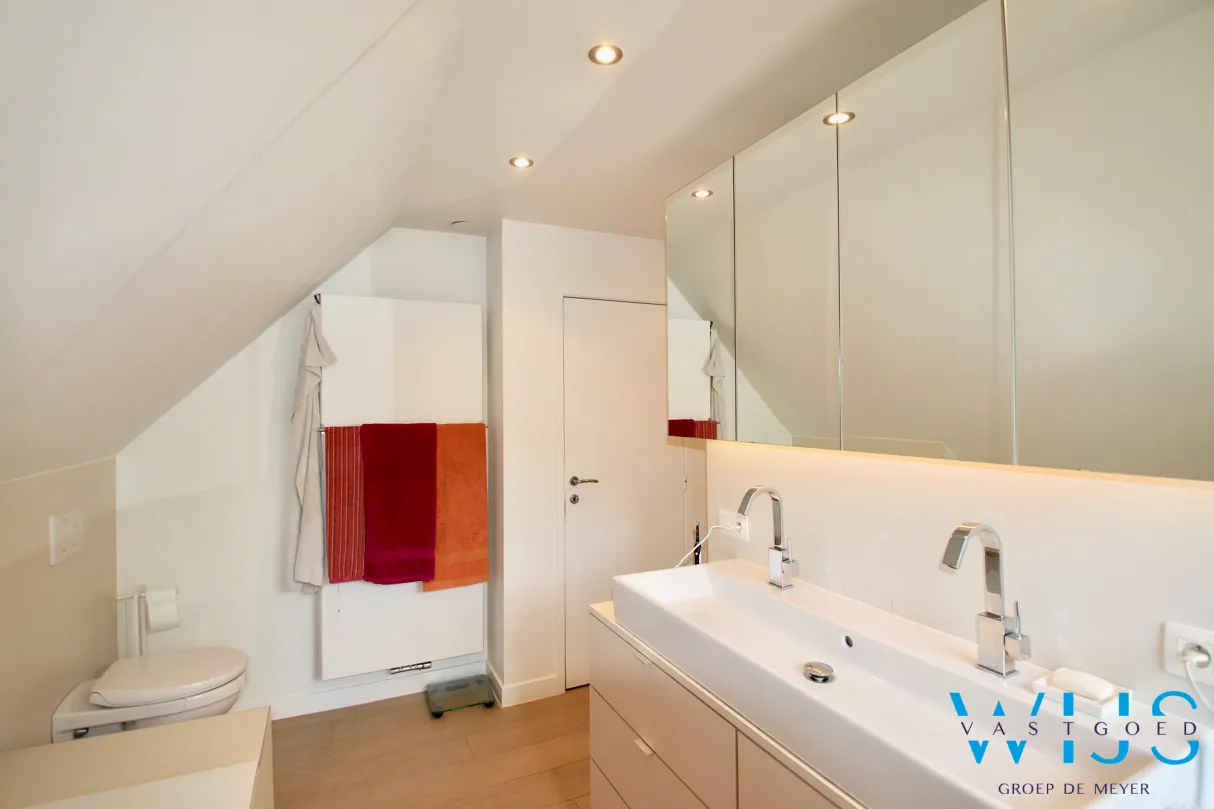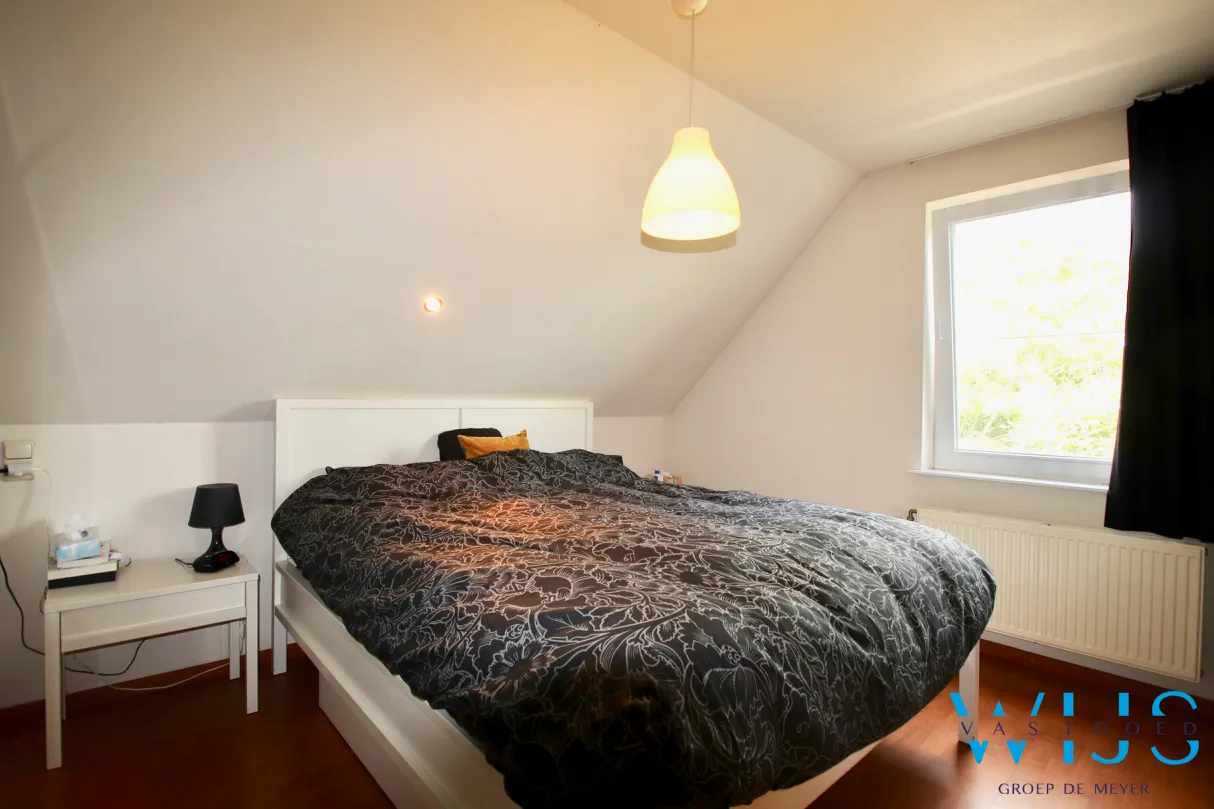 Op de 1ste verdieping: 3 slaapkamers en de moderne badkamer met bad, douche & toilet. De zolder is bergruimte !