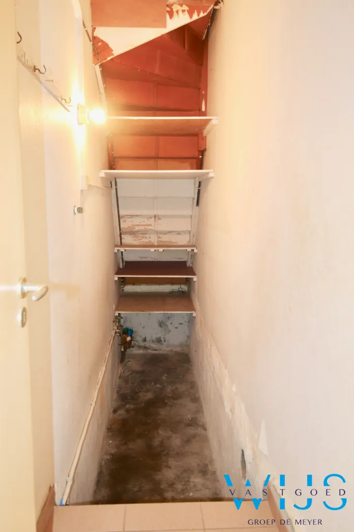 Indeling: Inkom, dubbele leefruimte, nette keuken met kelderberging, ruime wasplaats, apart toilet en de zonnige tuin met aparte garage.
