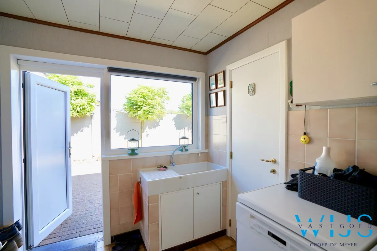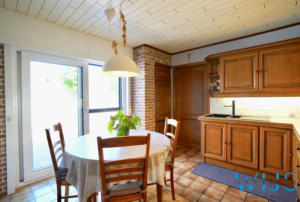 Indeling: inkomhal, leefruimte met eet- en zithoek, ... geïnstalleerde keuken, berging, wasplaats, apart toilet en mooi aangelegde tuin met aparte garage.