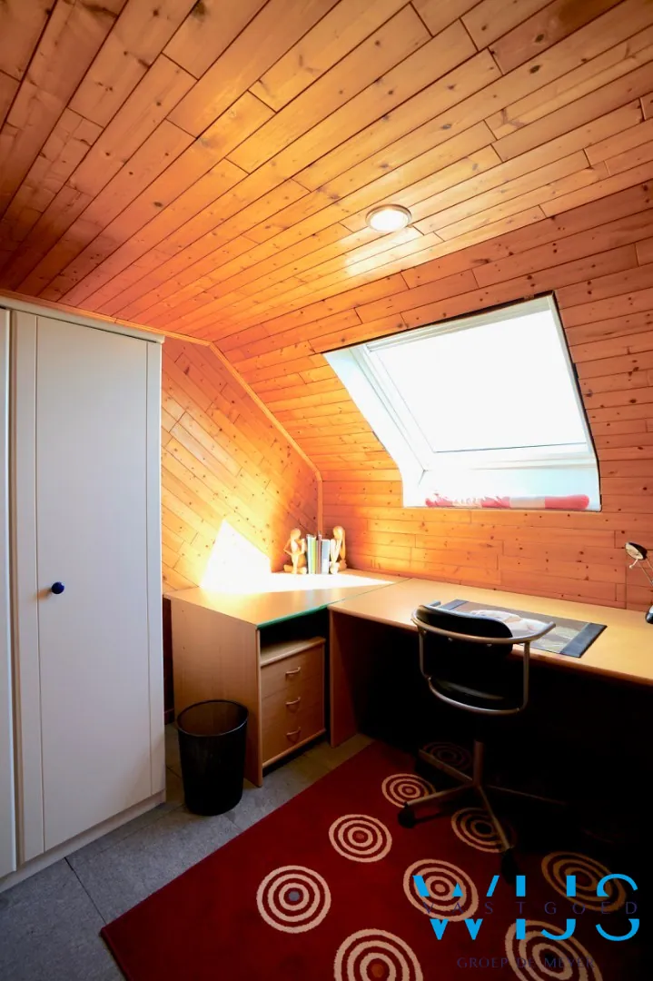 2de verdieping (vaste trap): 2 slaapkamers mogelijk. Momenteel is dit een bureau en slaapkamer.