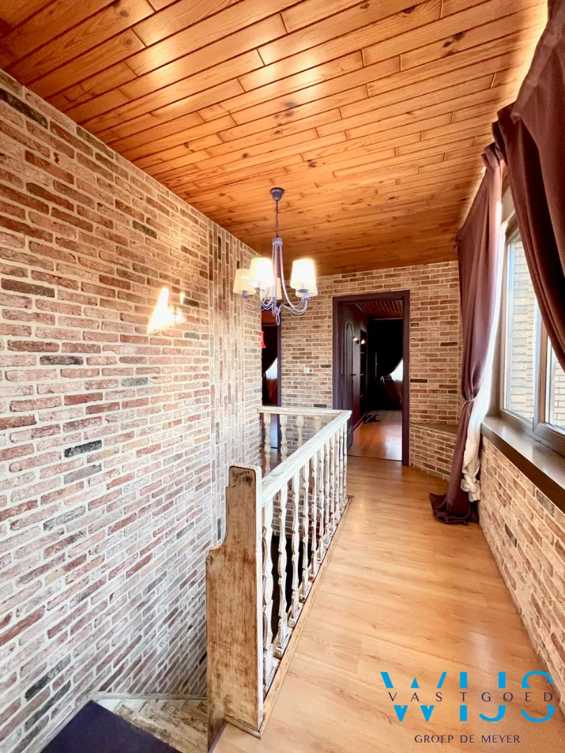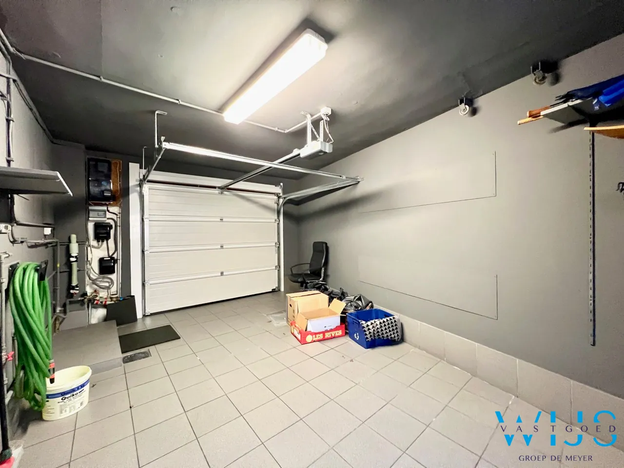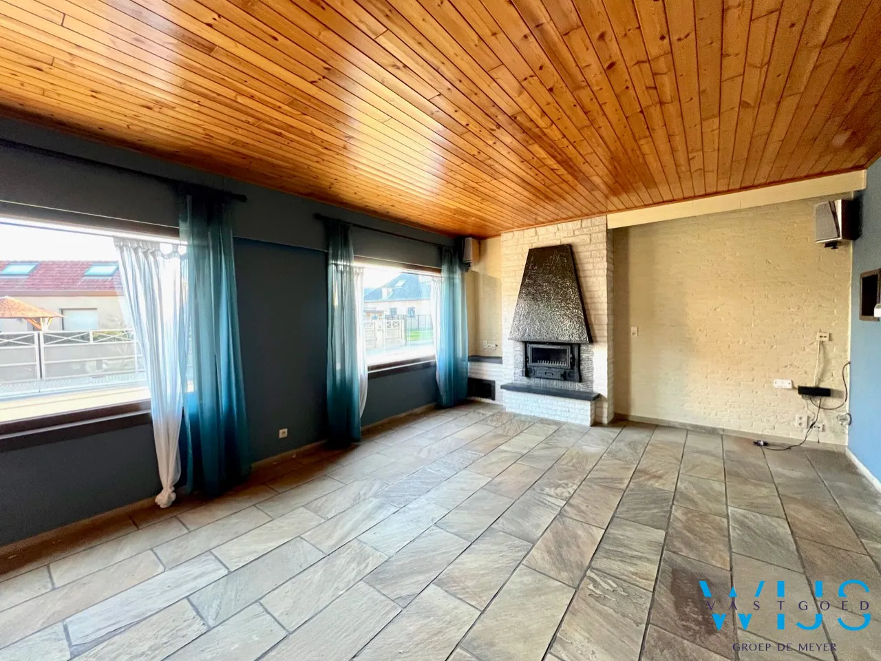 Indeling: inkom met apart toilet, ruime leefruimte met houthaard en rolluiken, zeer mooie maatkeuken incl. toestellen, was -en stookplaats, inpandige garage met berging.