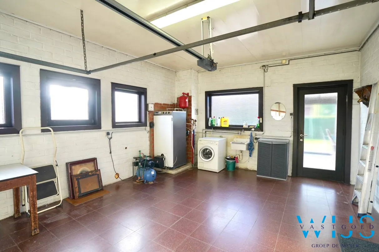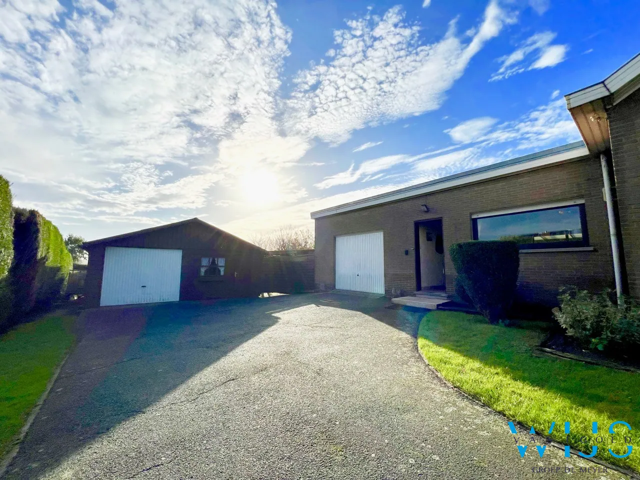 Indeling: inkom met vestiaire, ruime leefruimte met eet- en zithoek + houthaard, aangename leefveranda, nette leefkeuken met handige berging, ruime inpandige garage met wasplaats, nachthal, apart toilet, nette badkamer met toilet & douche en 3 mooie slaapkamers.