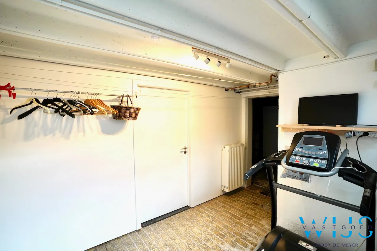 Indeling: Complete leefkelder/ondergrondse garage met verschillende aparte ruimtes (100m²), vaste trap naar de leefkeuken, bureauruimte/slaapkamer 1, badkamer 1 met bad/douche combinatie en dubbele lavabo, inkom met apart toilet en de zeer gezellige leefruimte.