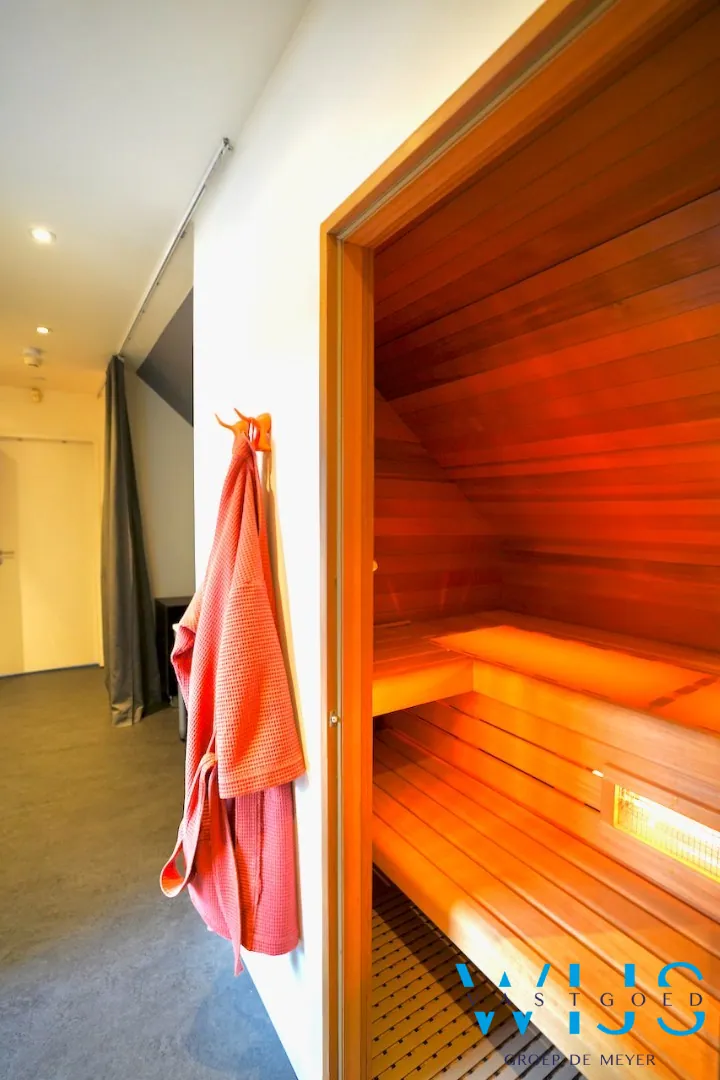 2de verdieping: 2 slaapkamers, ingebouwde sauna, bureauruimte en 2de badkamer met inloopdouche en apart toilet.