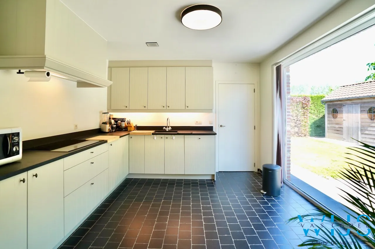 - Gezellige leefruimte met parket & een landelijke open keuken;