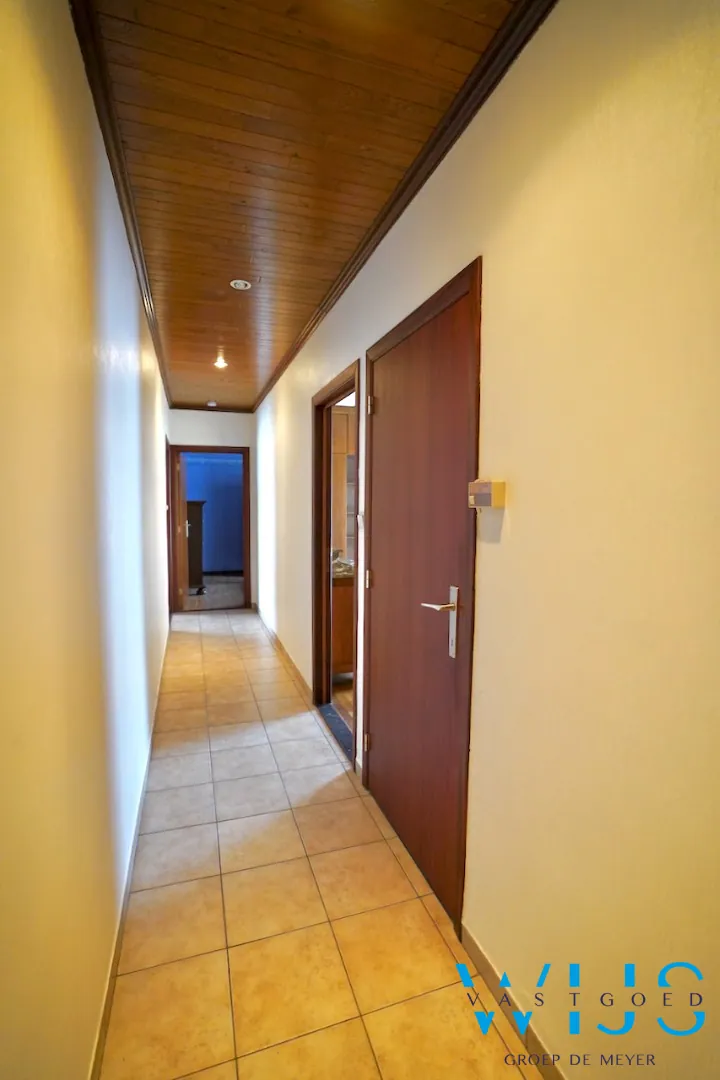 Indeling: inkomhal, apart toilet, leefruimte bestaande uit eet- en zithoek, recente keuken incl. toestellen, berging, wasplaats met vaste trap, nachthal, 3 slaapkamers en de badkamer.