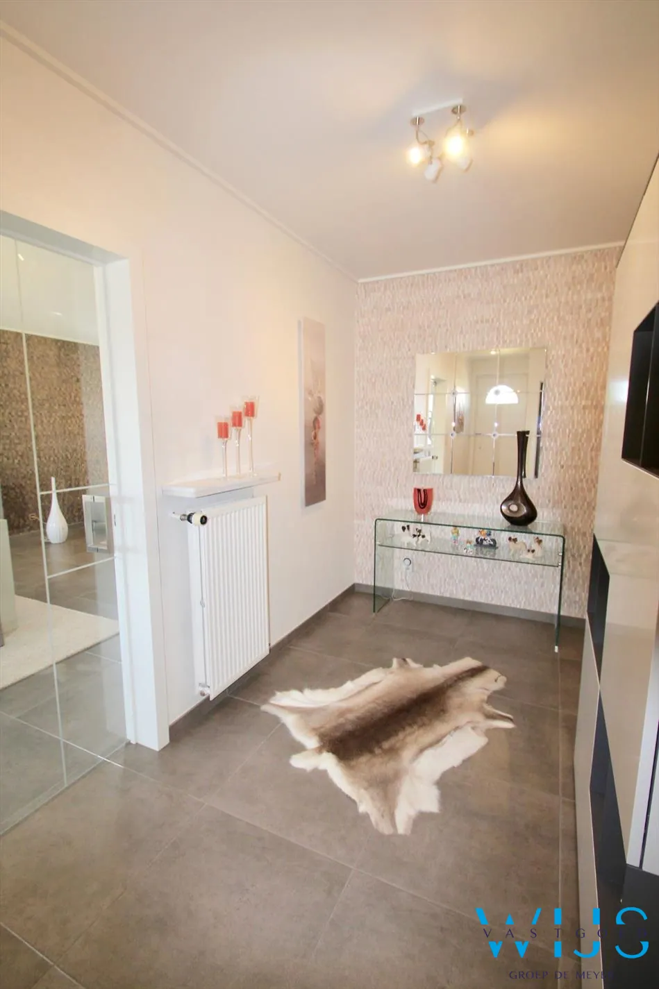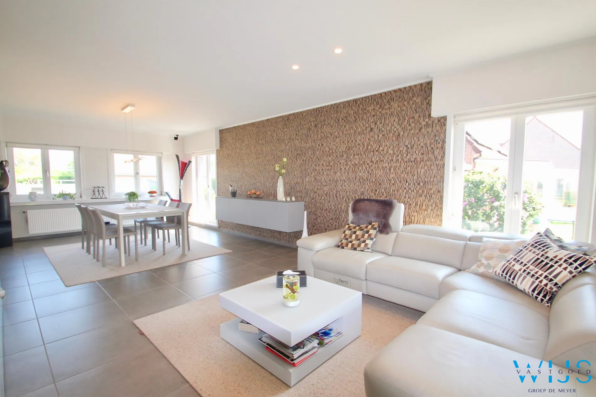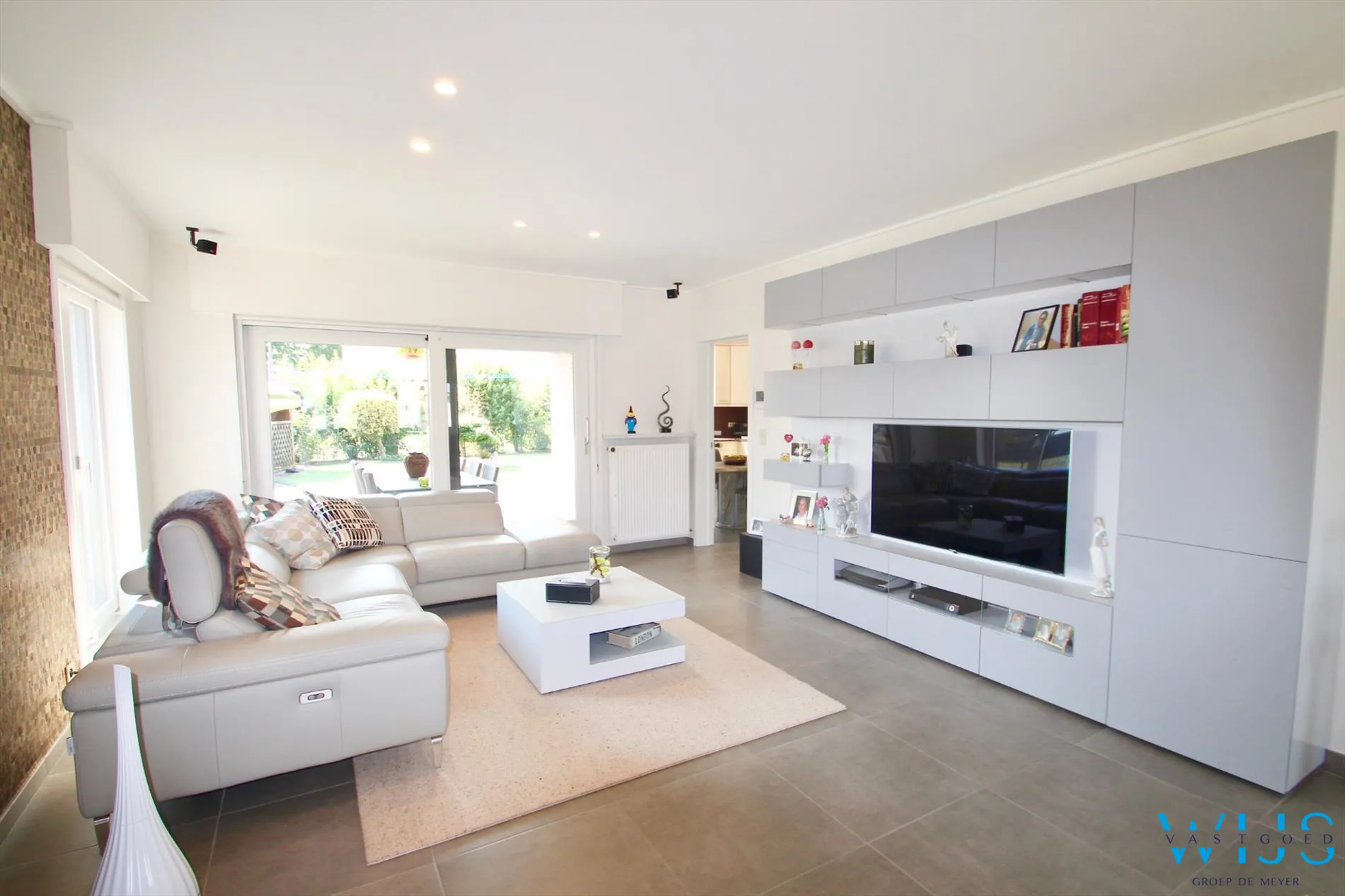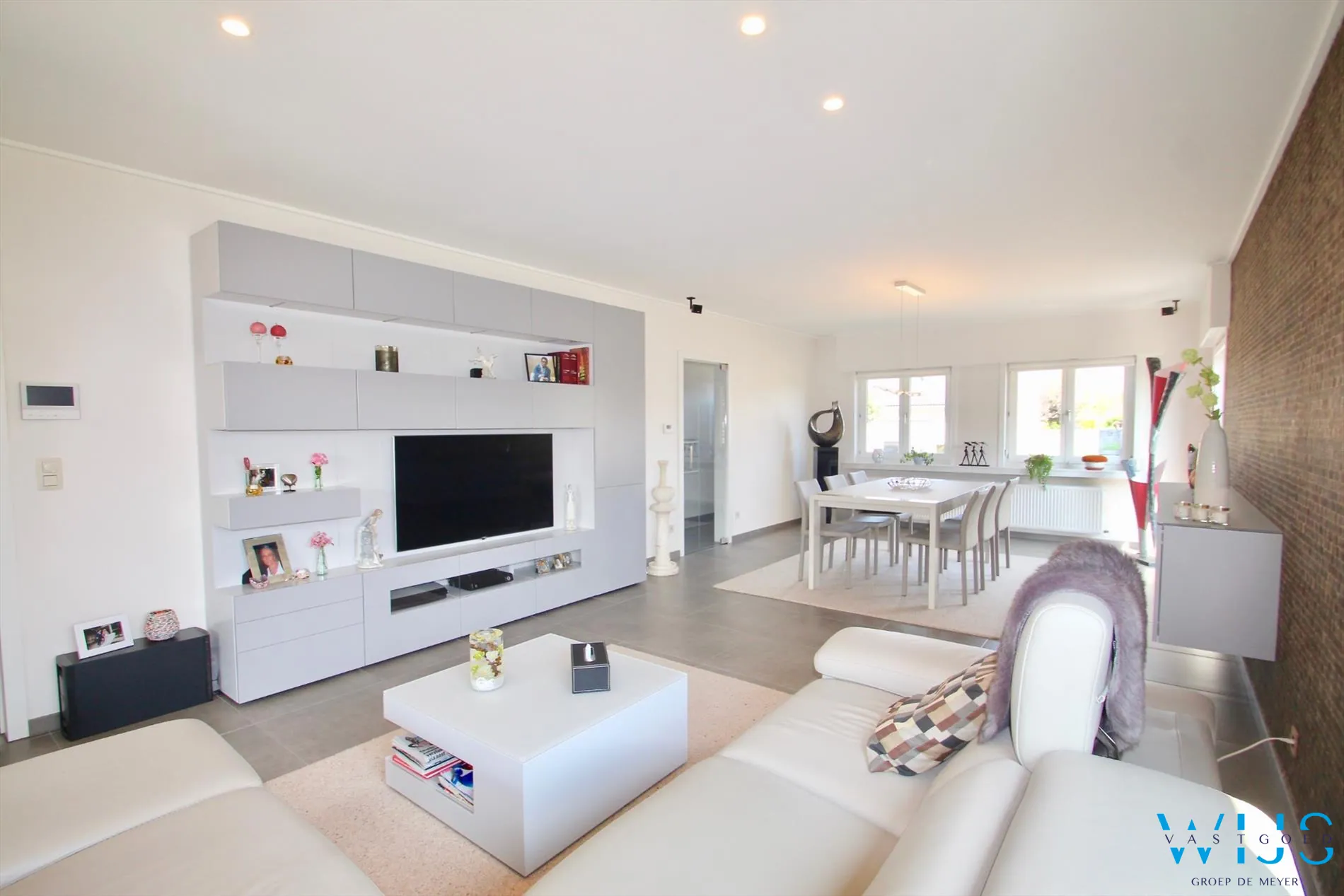 - Totale vernieuwing van de leefruimte hal ed. (vloeren, muren, plafonds, gordijnen,...)