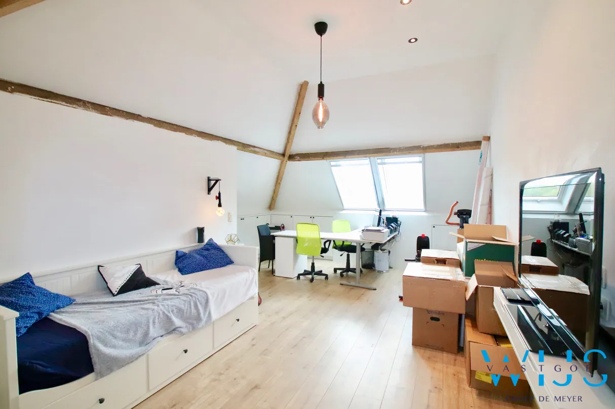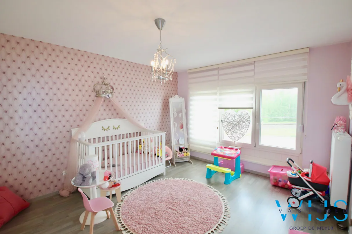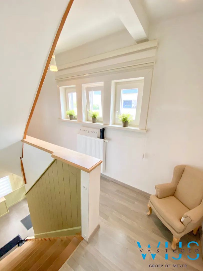 2de verdieping: nachthal, 2 volwaardige slaapkamers waarvan 1 met dressing + apart toilet en de 3de slaapkamer/hobby/bureau ruimte (vaste trap).