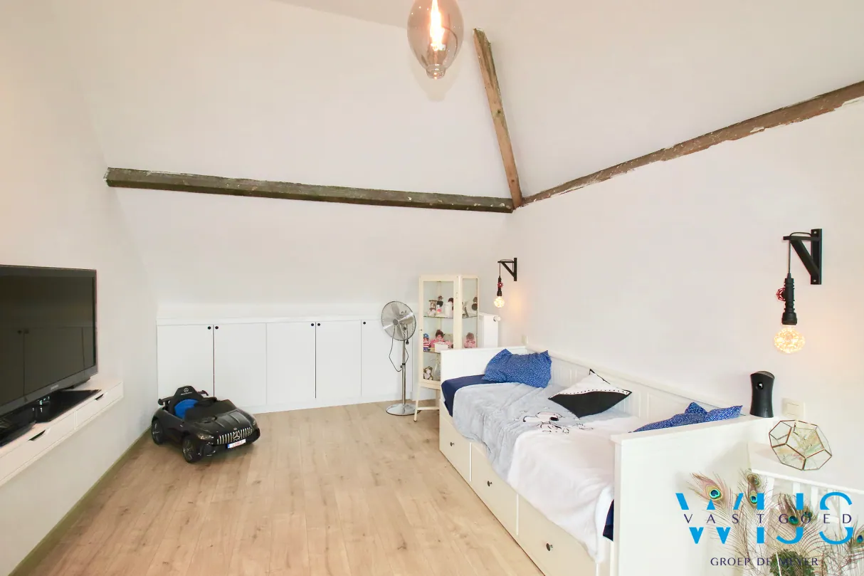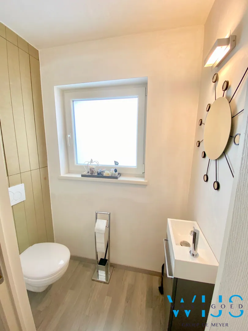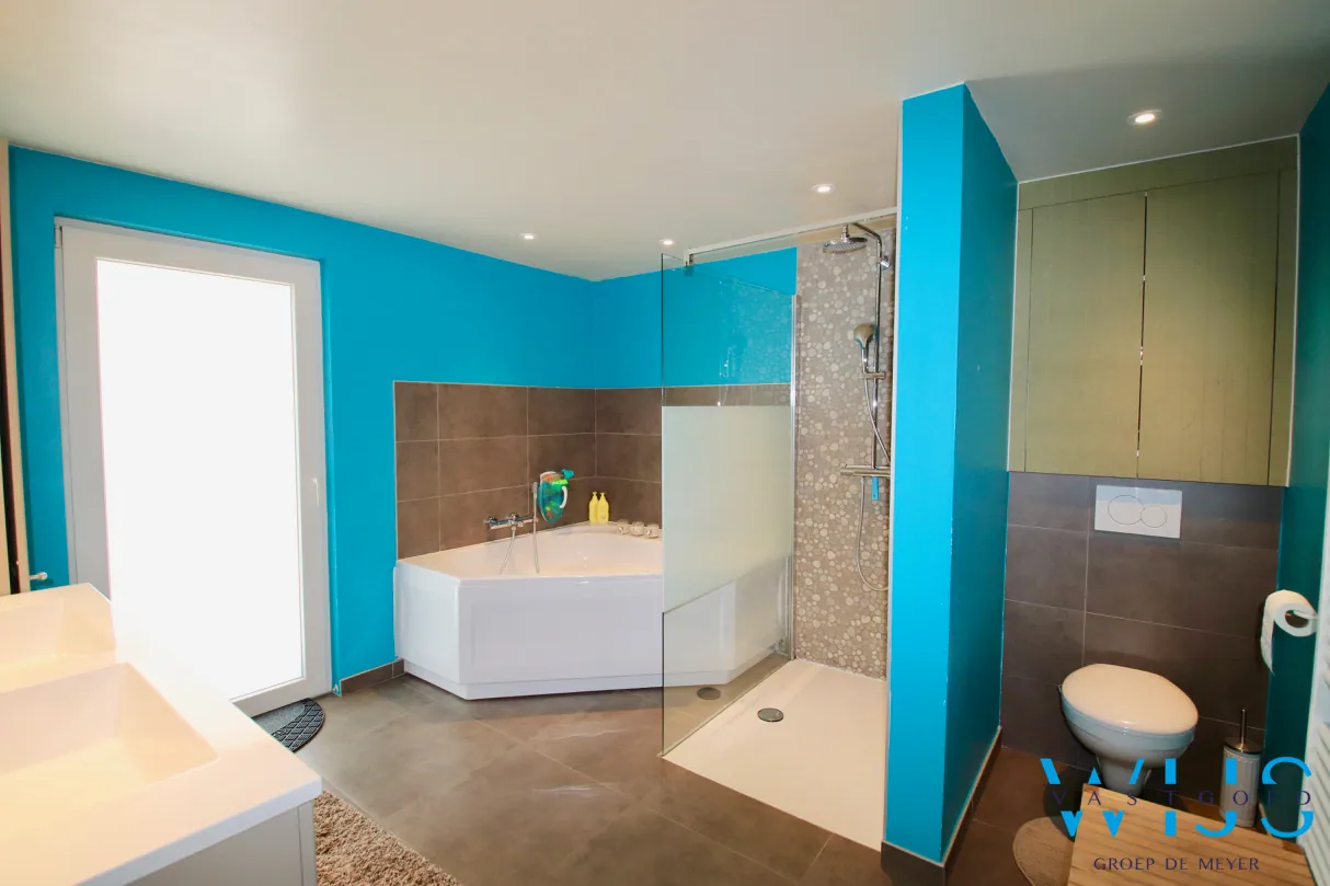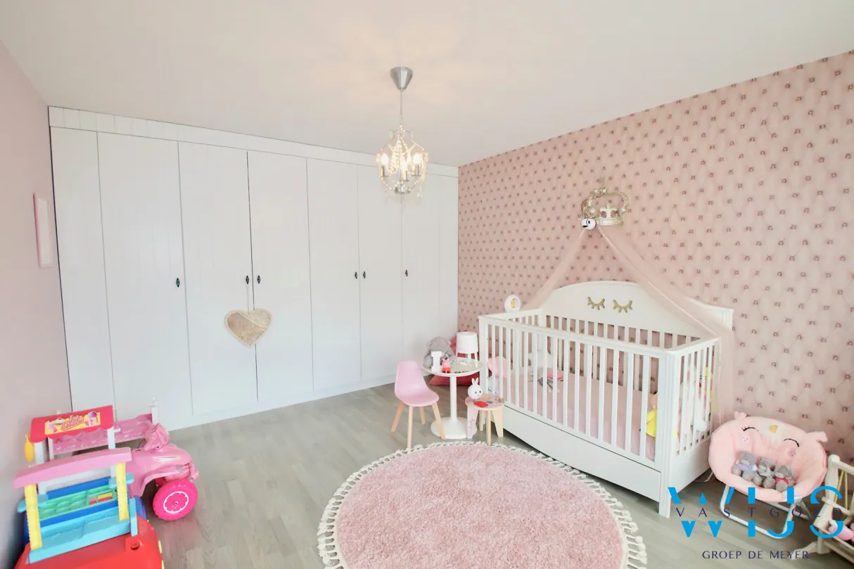 2de verdieping: nachthal, 2 volwaardige slaapkamers waarvan 1 met dressing + apart toilet en de 3de slaapkamer/hobby/bureau ruimte (vaste trap).