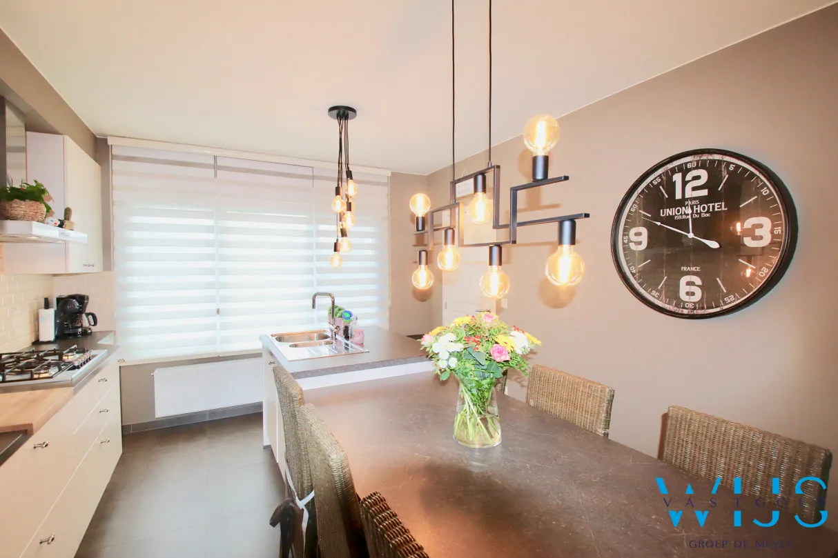 Deze gerenoveerde gezinswoning, gelegen op een ZUIDgericht perceel van 521 vierkante meter, ligt vlakbij de invalswegen en beschikt over een zonnige mooie tuin met zonneterras en een praktische aparte garage met extra carport! In 2014 werd een TOTAALRENOVATIE uitgevoerd (nieuwe leidingen, nieuw dak, HR-glas, isolatie, CV-ketel op aardgas, vernieuwd sanitair, conforme elektriciteit…). Alles werd tot in de puntjes afgewerkt en er werd gekozen voor een zeer gezellige tijdloze stijl ! De prachtige op maat gemaakte leefkeuken incl. kwalitatieve toestellen springt hier in het oog en er is een ruime moderne badkamer met bad & douche aanwezig !