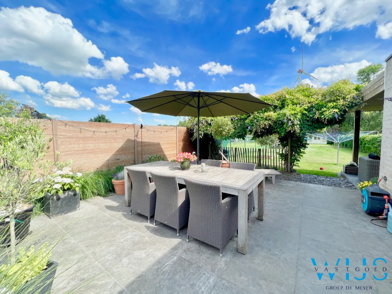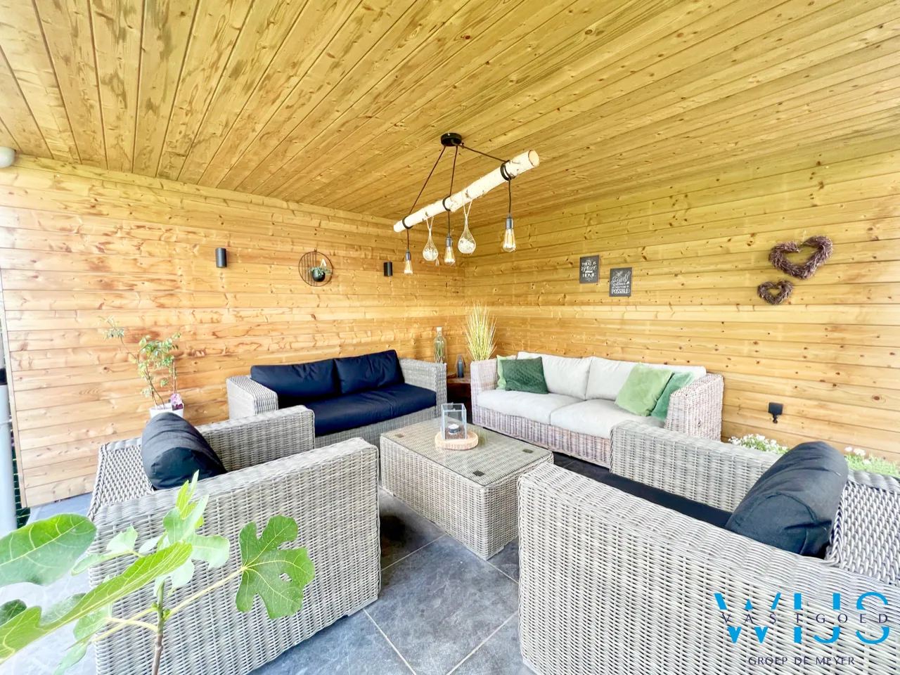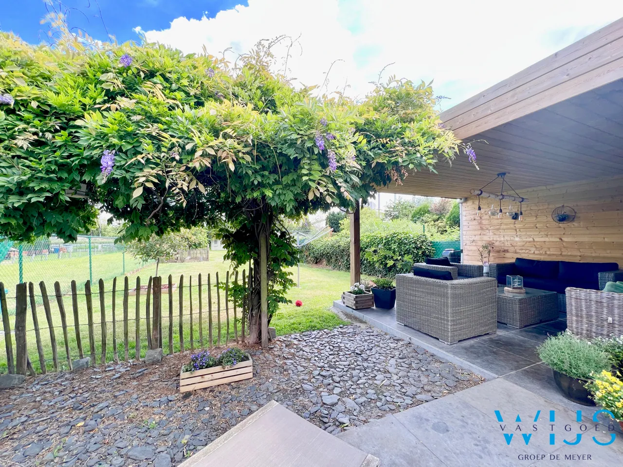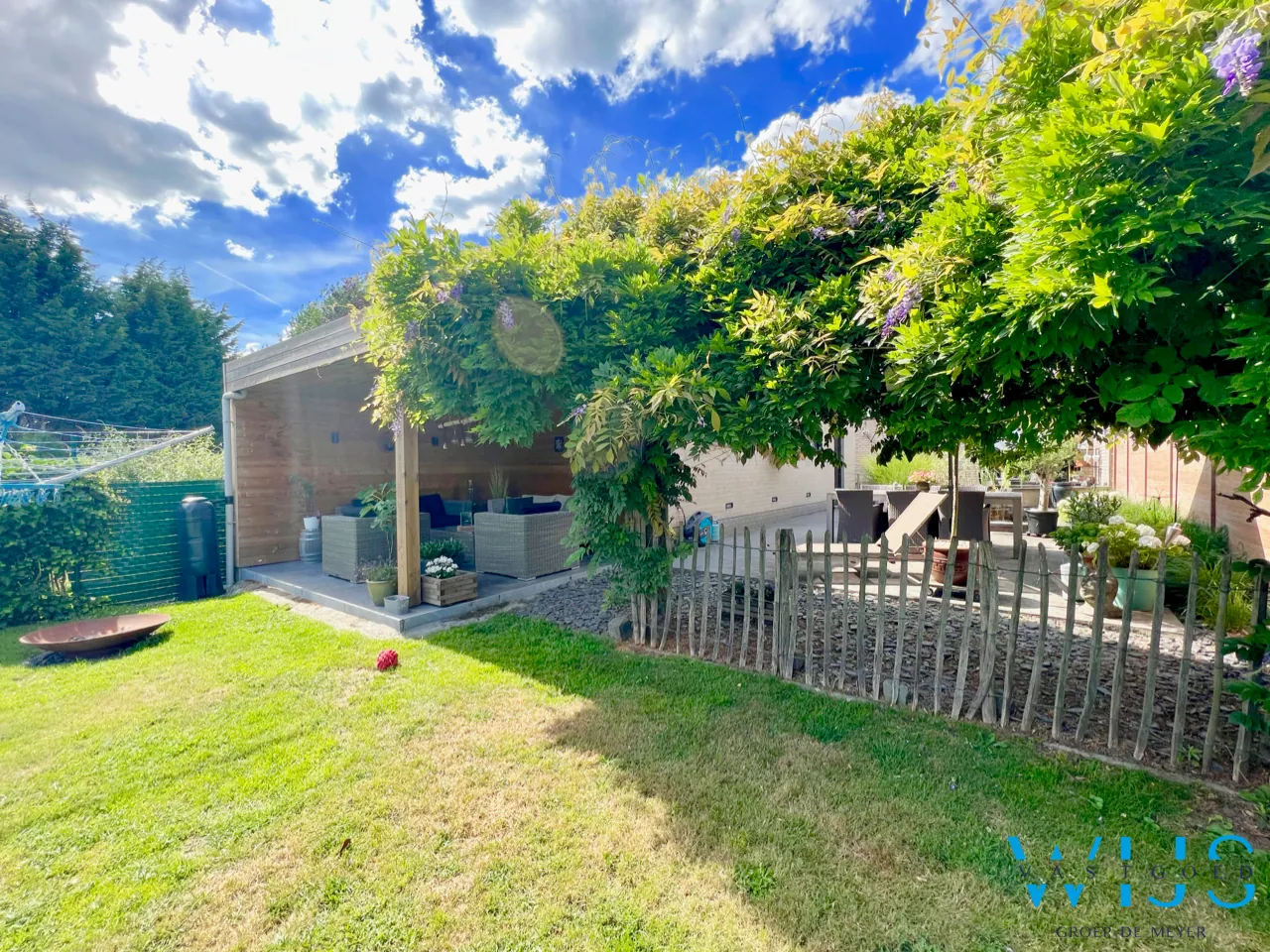 Het zuidgerichte perceel van 934m2 is leuk ingedeeld en beschikt over verschillende terrassen waaronder een recent gebouwde prachtige overdekte lounge !