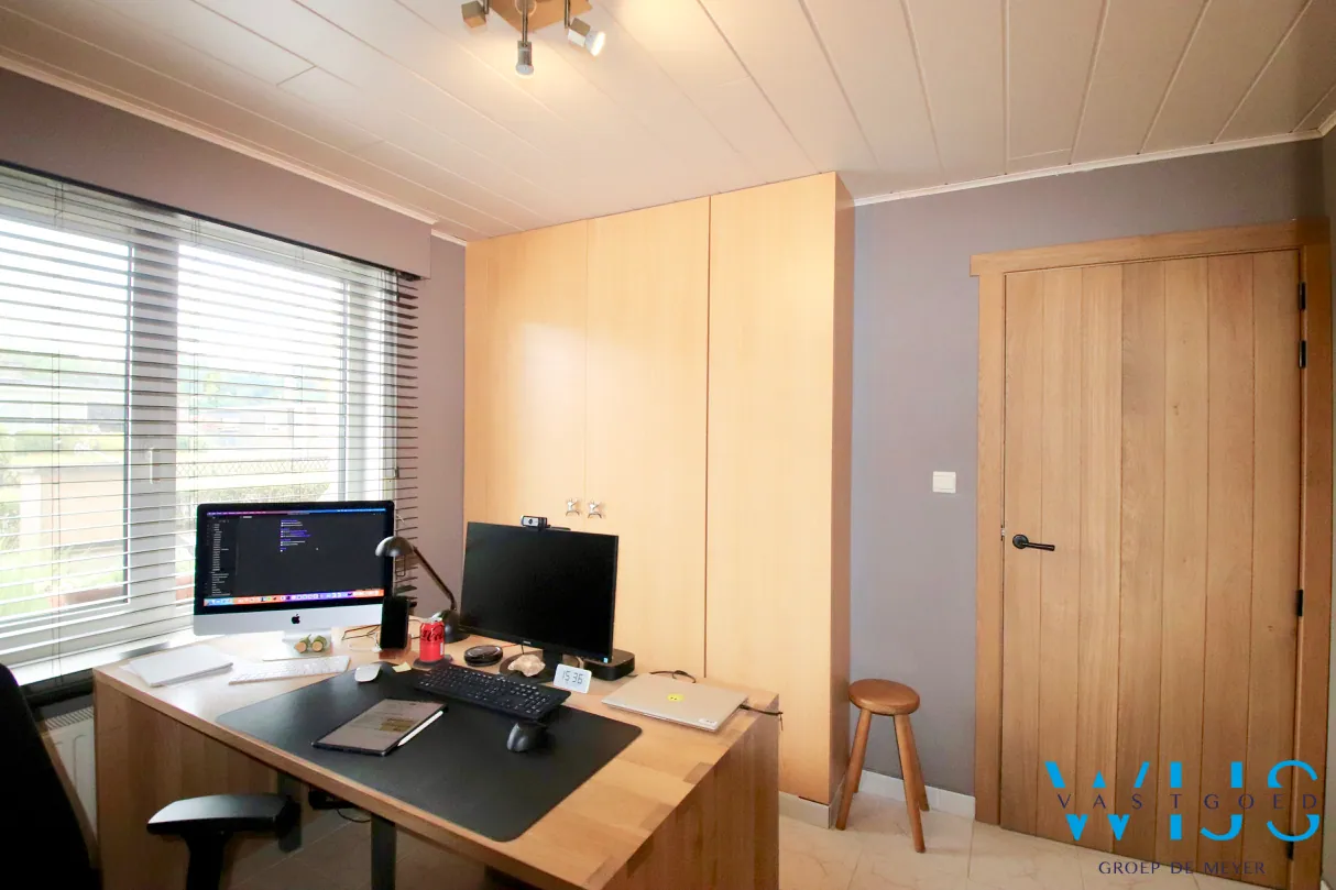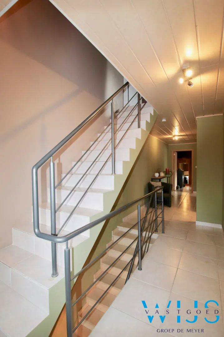 Indeling: inkom, bureauruimte of slaapkamer 1, lichtrijke leefruimte met ... houthaard, prachtige keuken in volle eik met kwalitatieve toestellen en zijn eetruimte, ruime kelder, wasplaats met douche + apart toilet. Op de verdieping: ruime nachthal met 3 mooie slaapkamers en de aangename badkamer met inloopdouche + toilet. Via de vaste trap is er op de 2de verdieping een 5 de slaapkamer met dressing !