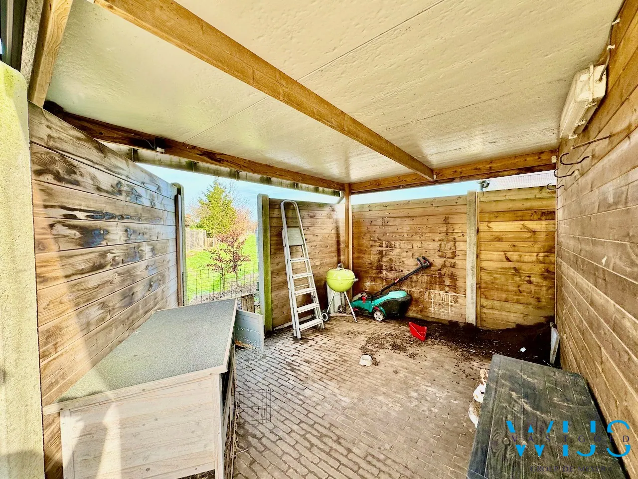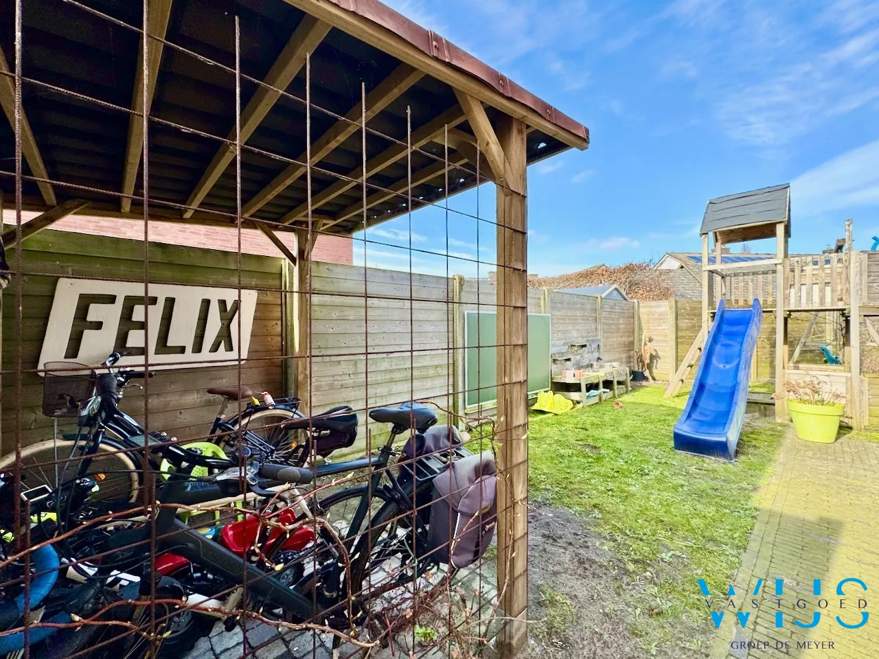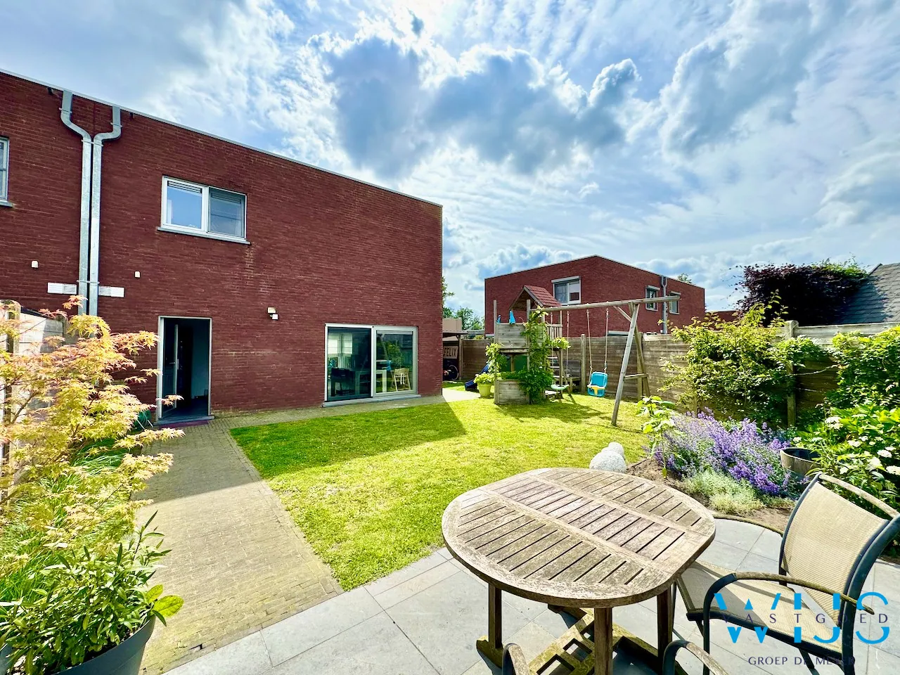 - Ideaal perceel van 380m² + volledig aangelegd (tuinberging, zonneterras, poortje aan zijkant)