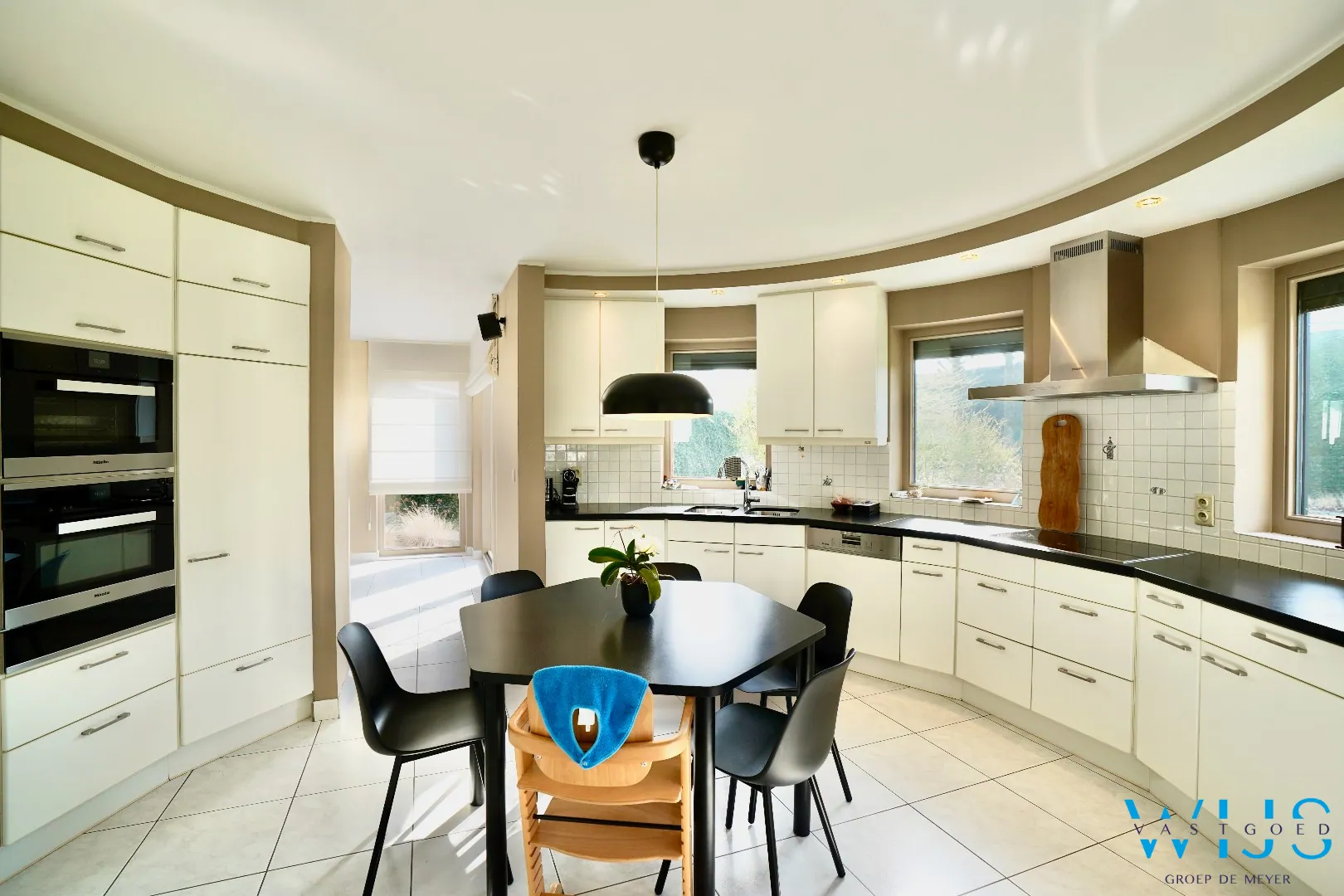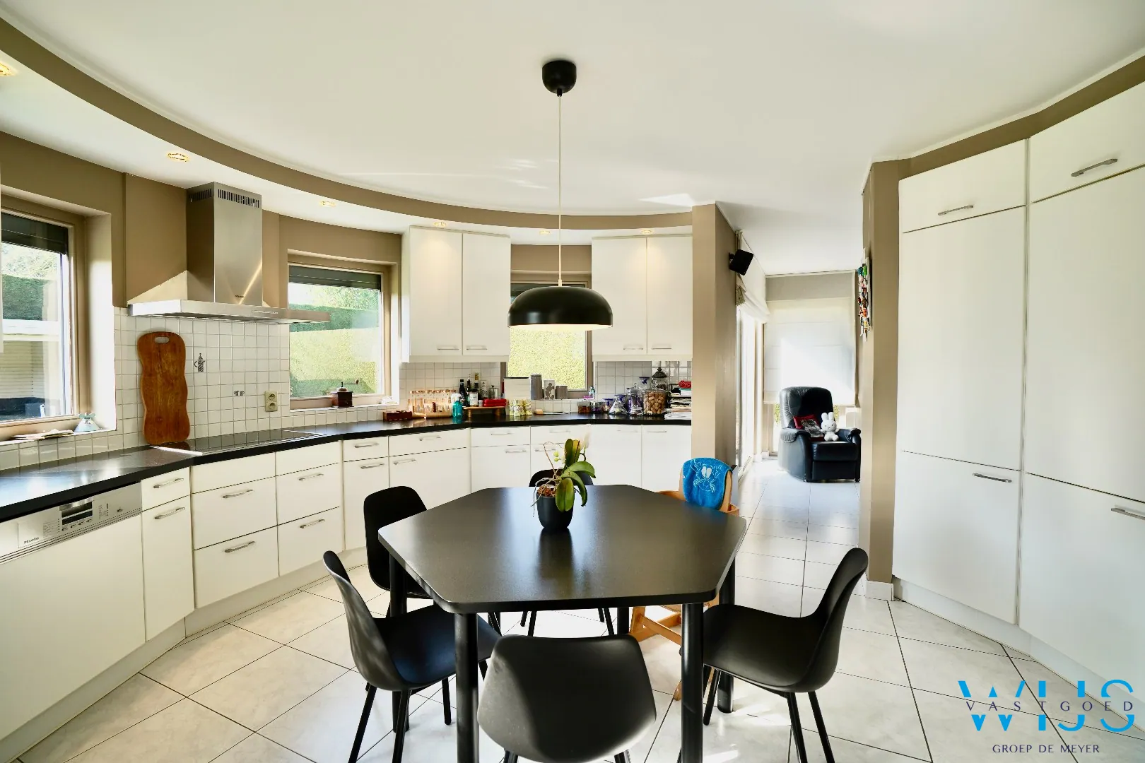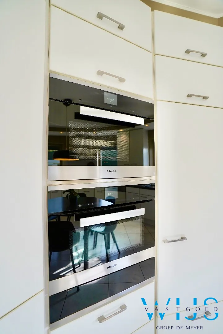 Binnenin geniet u van een lichtrijke en volwaardige leefruimtes, afgewerkt met oog voor detail. De kwalitatieve centrale keuken, uitgerust met Miele-toestellen, vormt echt het hart van deze woning en biedt alle hedendaagse comfort.