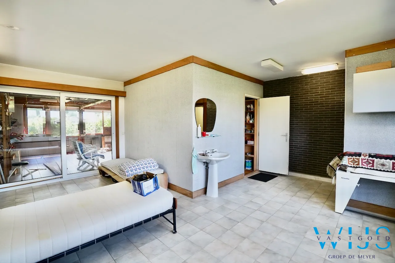 Deze zeer ruime laagbouw uit 1964 werd destijds zorgvuldig gebouwd met een ideale combinatie van de geniale ligging en de vlotte bereikbaarheid. Doorheen de jaren werd het pand steeds goed onderhouden en in 1993 werd er zelfs nog een deel bijgebouwd. Door zijn kwalitatieve materialen & zijn bewoonbare oppervlakte van 245m² kan dit pand (mits opfrissingswerken) direct bewoond worden. Het EPC kan vlot bijgestuurd te worden door de aanwezigheid van de kruipkelder en het plat dak die eenvoudig bij geïsoleerd kan worden. De lichtrijke leefruimtes & slaapkamers zijn meer dan volwaardig en hebben allen een prachtig uitzicht op de geweldige onderhouden volwassen tuin van 10.130 vierkante meter ! Rondom de eigendom kan niet meer bijgebouwd worden en de invalsweg E34 ligt vlakbij wat de verbindingen geweldig maakt.