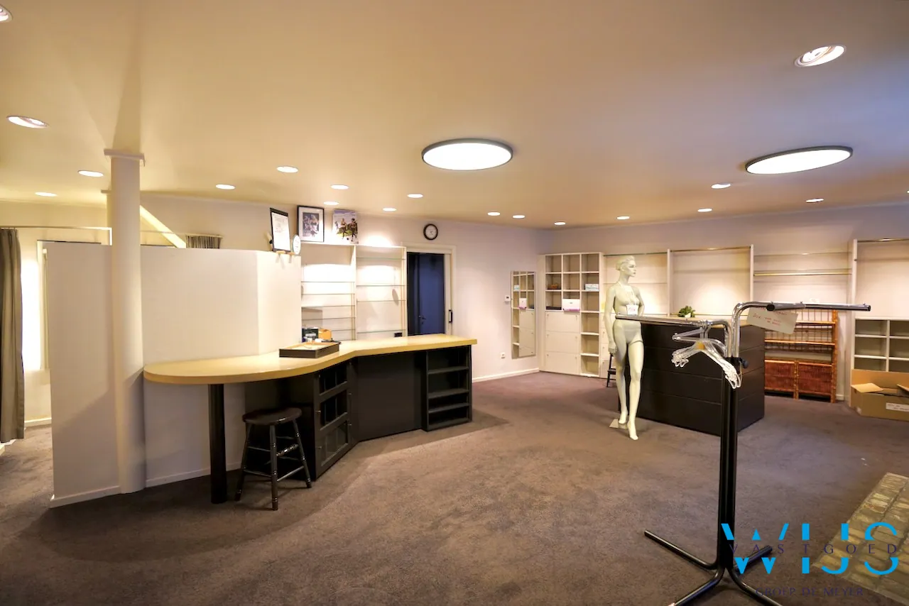 Het handelspand op het gelijkvloers is volwaardig uitgerust en kan eenvoudig worden aangepast aan verschillende doeleinden.