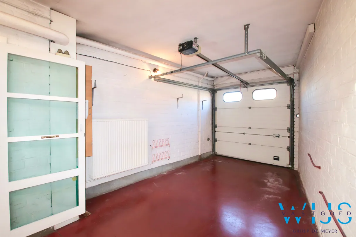 Indeling: inkomhal, mooie leefruimte, ruime keuken, droge kelder, achterhal, apart toilet, zeer ruime inpandige garage met stookplaats/berging en de prachtige zuidgerichte tuin.