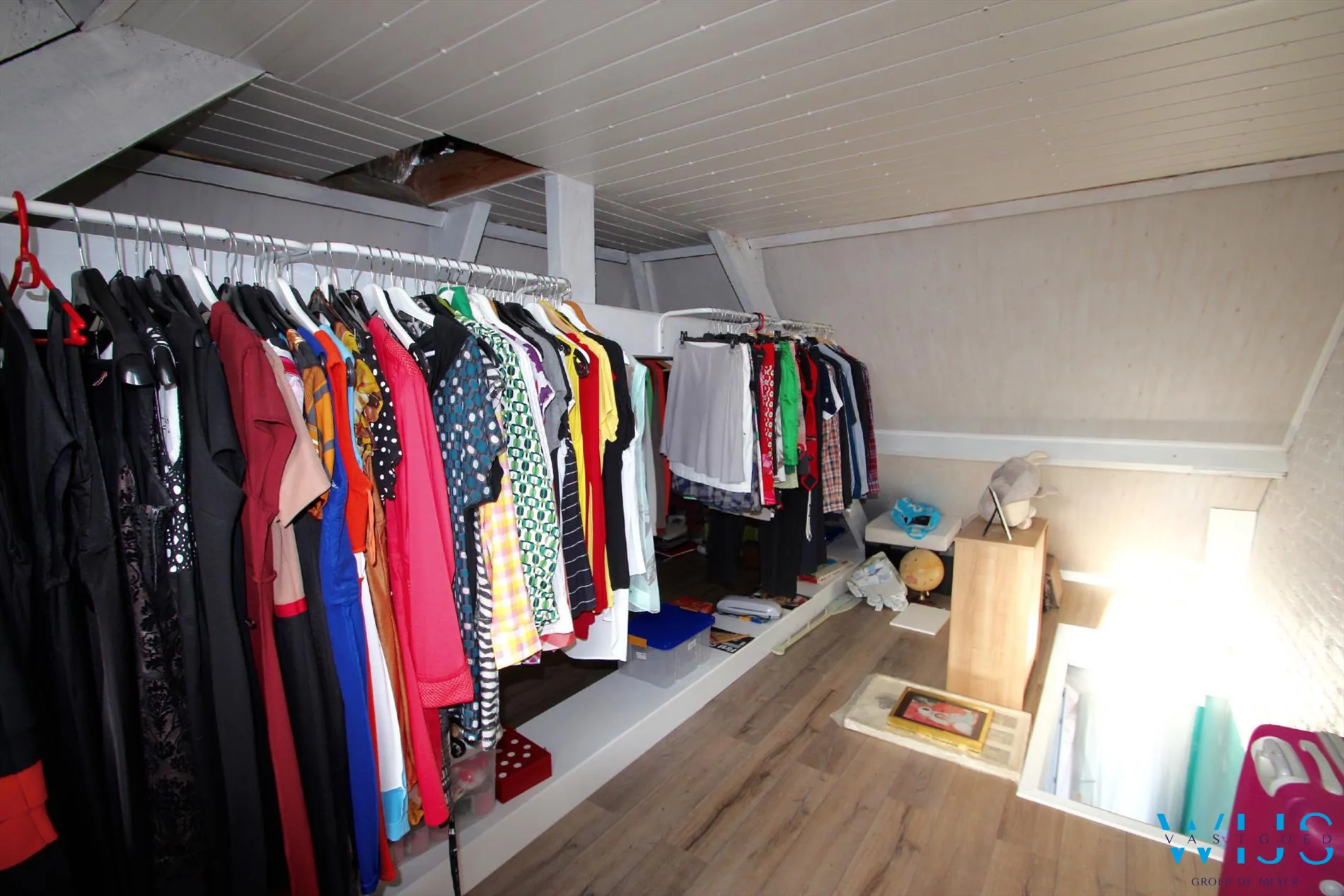 Indeling: inkom met traphal, leefruimte met eet -en zithoek, gezellige keuken, veranda, wasplaats en badkamer. Op de verdieping zijn er 2 mooie slaapkamers en de zolderruimte (vaste trap) werd volledig ingericht en geïsoleerd. Buiten is er nog een aparte garage en een ruime berging. In de tuin achteraan geniet u van een verzicht