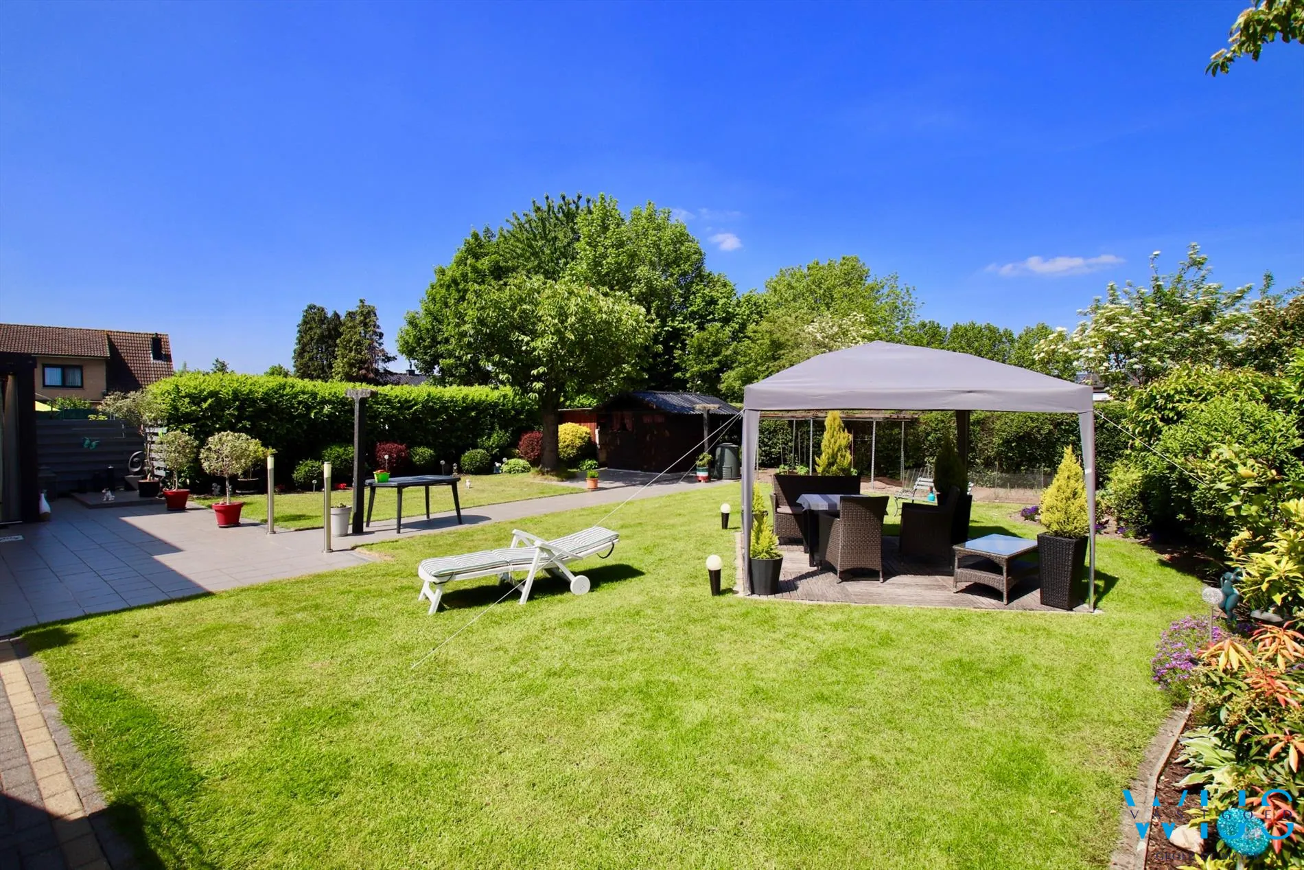 Er is een mooie veranda aanwezig die u uitzicht geeft over de tuin, een hele ruime inpandige garage en een extra houten garage/berging aan de zijkant. De oprit en terrassen werden ook steeds verzorgd wat het totaalplaatje zeker instapklaar maakt.