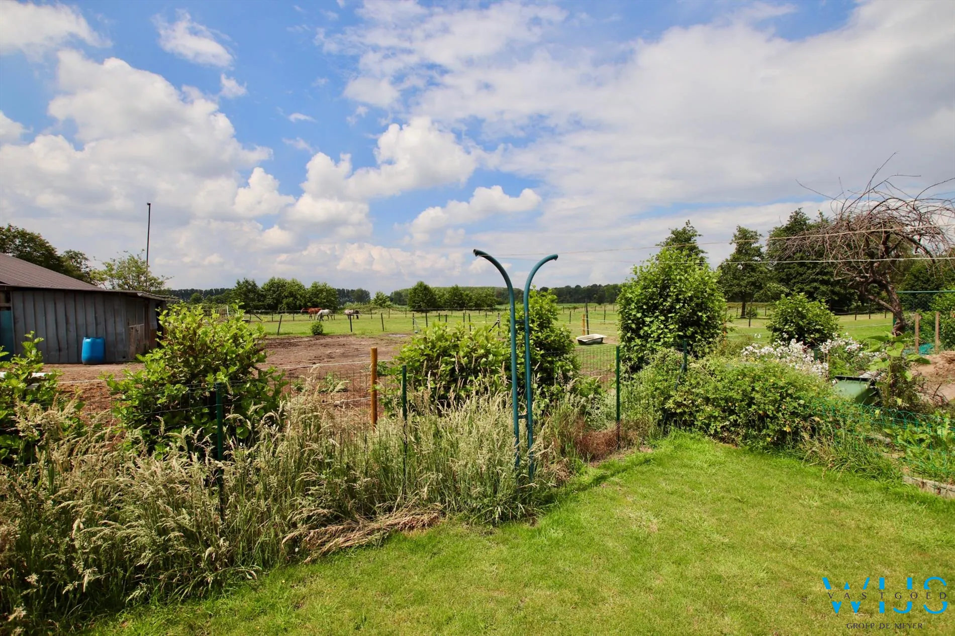 In de zonnige tuin met zonneterras en meerdere opbergmogelijkheden is er een vrij uitzicht naar de achterliggende velden !