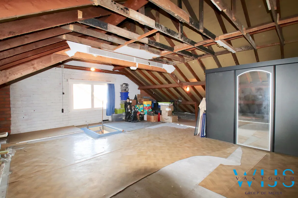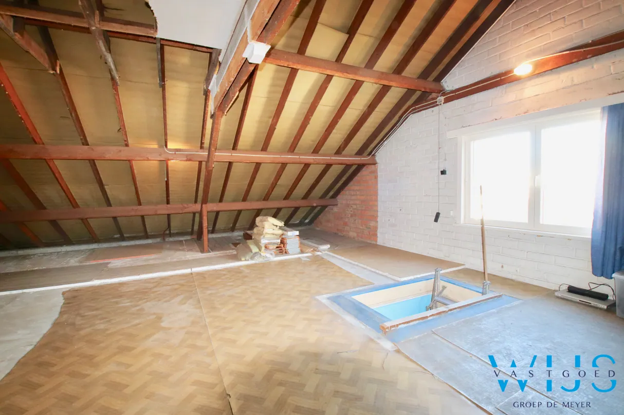 Dit woonhuis in halfopen bebouwing staat op een zonnig & groen perceel van 576 m². De woning is VOLLEDIG onderkelderd (inclusief ondergrondse garage) en er zijn tal van mogelijkheden op de bovenverdieping. Op deze verdieping (BETONNEN GEWELVEN) kunt u eenvoudig enkele extra ruimtes/ slaapkamers creëren. Mits het extra isoleren van de zoldervloer en het kelderplafond kan een epc-score van 287 kWh/m²/jaar behaald worden. Het nieuwe ALUMINIUM SCHRIJNWERK en de prachtige kwalitatieve badkamer zijn echte eyecatchers.
