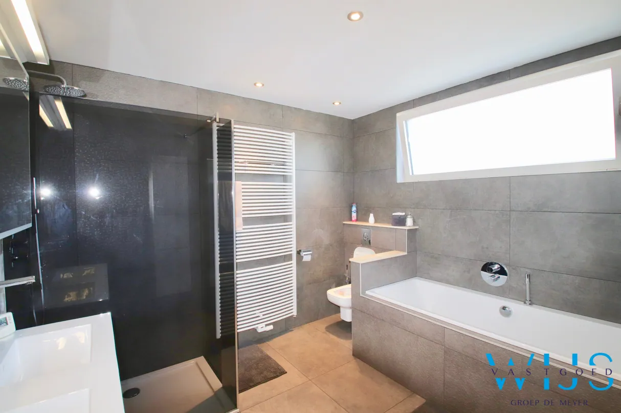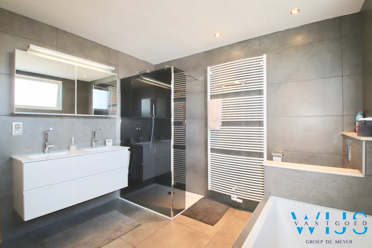 - Fantastisch mooie en ruime badkamer met bad, douche en dubbel meubel