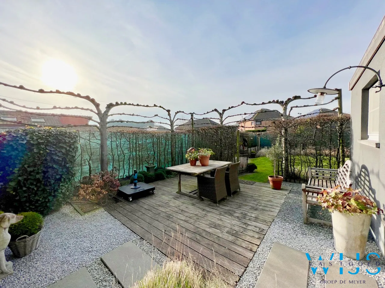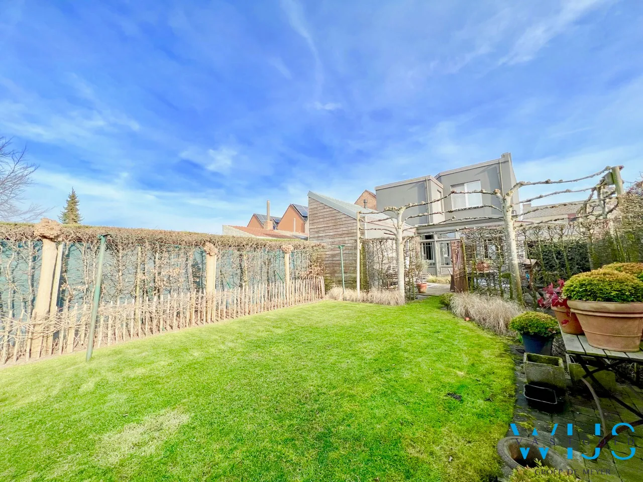Het terras en de tuin zijn net zoals de woning totaal afgewerkt.
