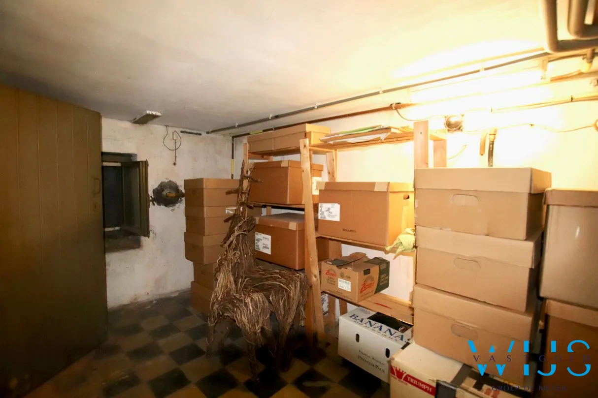 Indeling: Inkomhal met apart toilet, prachtige leefruimte uit 2 delen en toegang tot de leefveranda die uitkijkt op de tuin, sublieme landelijke keuken uit 2 delen, ruime berging/wasplaats, ruime en droge kelder.