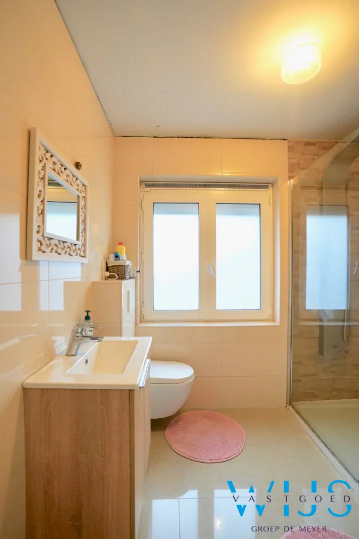 Dit instapklaar en zeer kwalitatief opgebouwd pand zal u verrassen door zijn geweldige ruimtes ! Zo zijn er 2 ZEER ruime slaapkamers en een babykamer + de mogelijkheid tot het creëren van 2 extra slaapkamers op de 2de verdieping die te bereiken is met de vaste trap (betonnen gewelven).