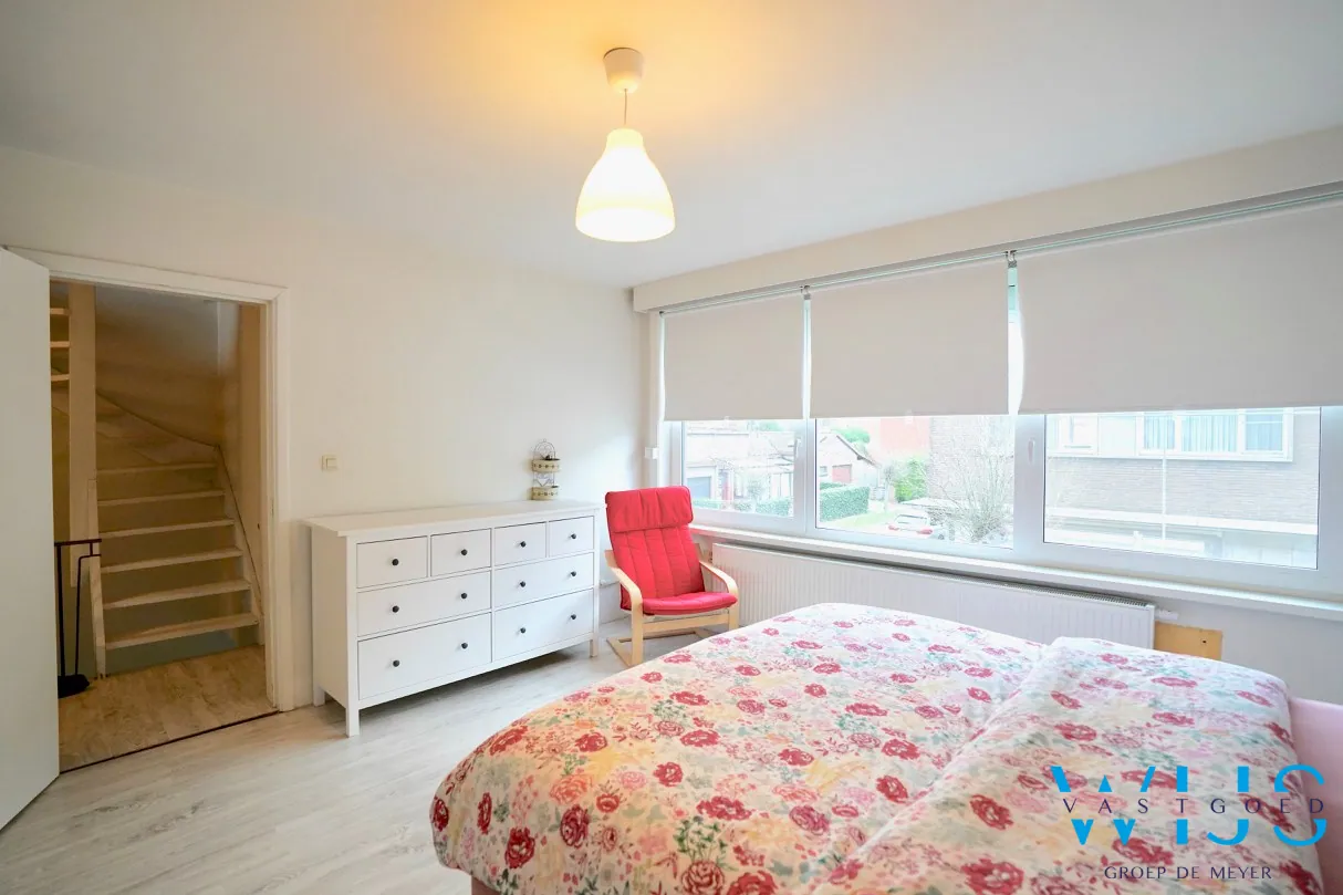 2de verdieping (VASTE TRAP !): 1 ruime slaapkamer die opgesplitst kan worden in 2 aparte slaapkamers (af te werken).
